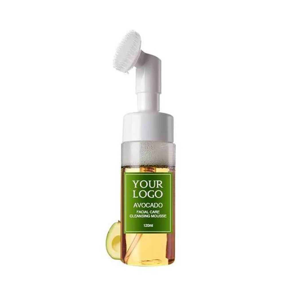 120ml Custom Logo Face Wash Private Label with Brush Avocado Watermelon Green Tea Cleansing Mousse Liquid Face Clean Makeup Milk