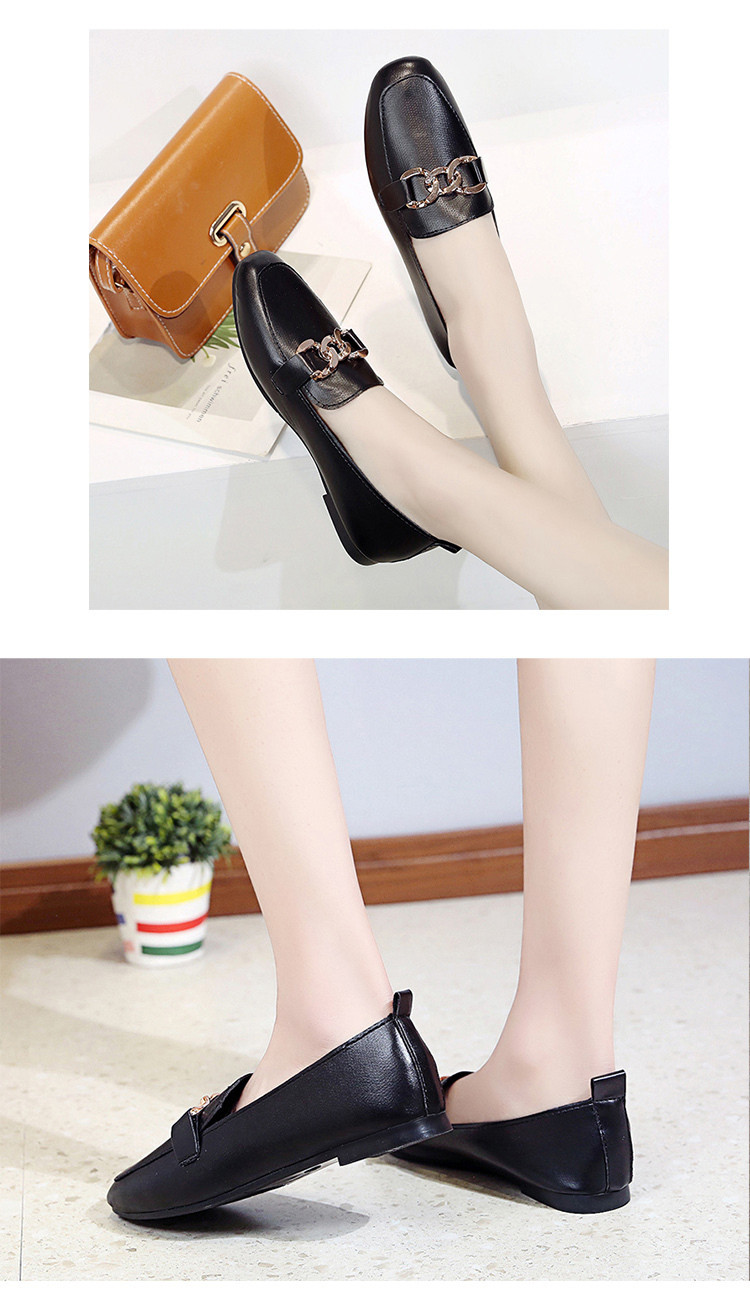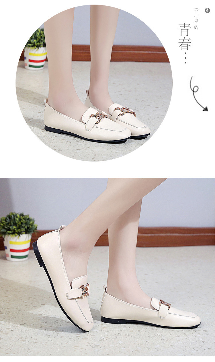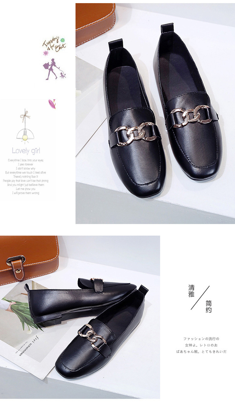 2021 summer new pattern Lefu Midmouth Square head low-heel chain Casual and versatile commute Women's shoes Flat bottom work leather shoes