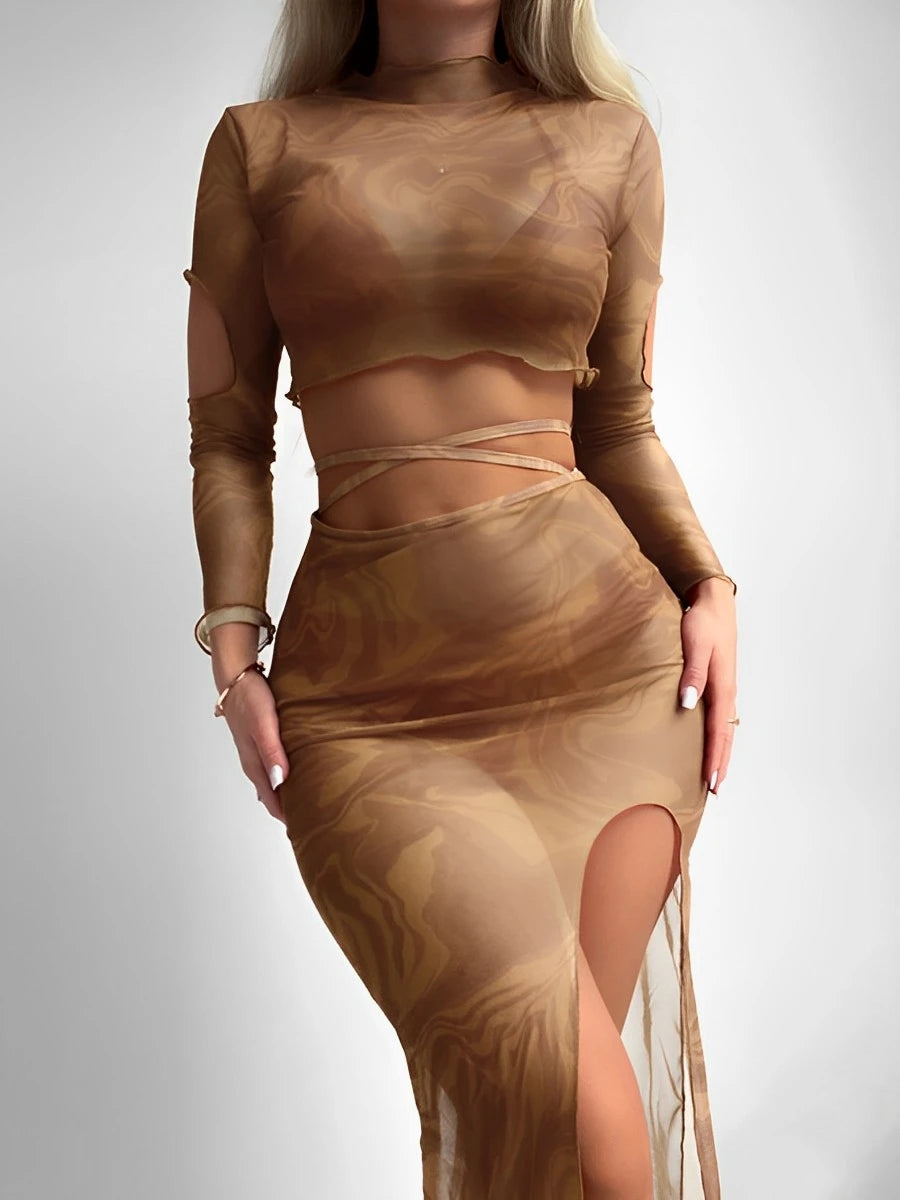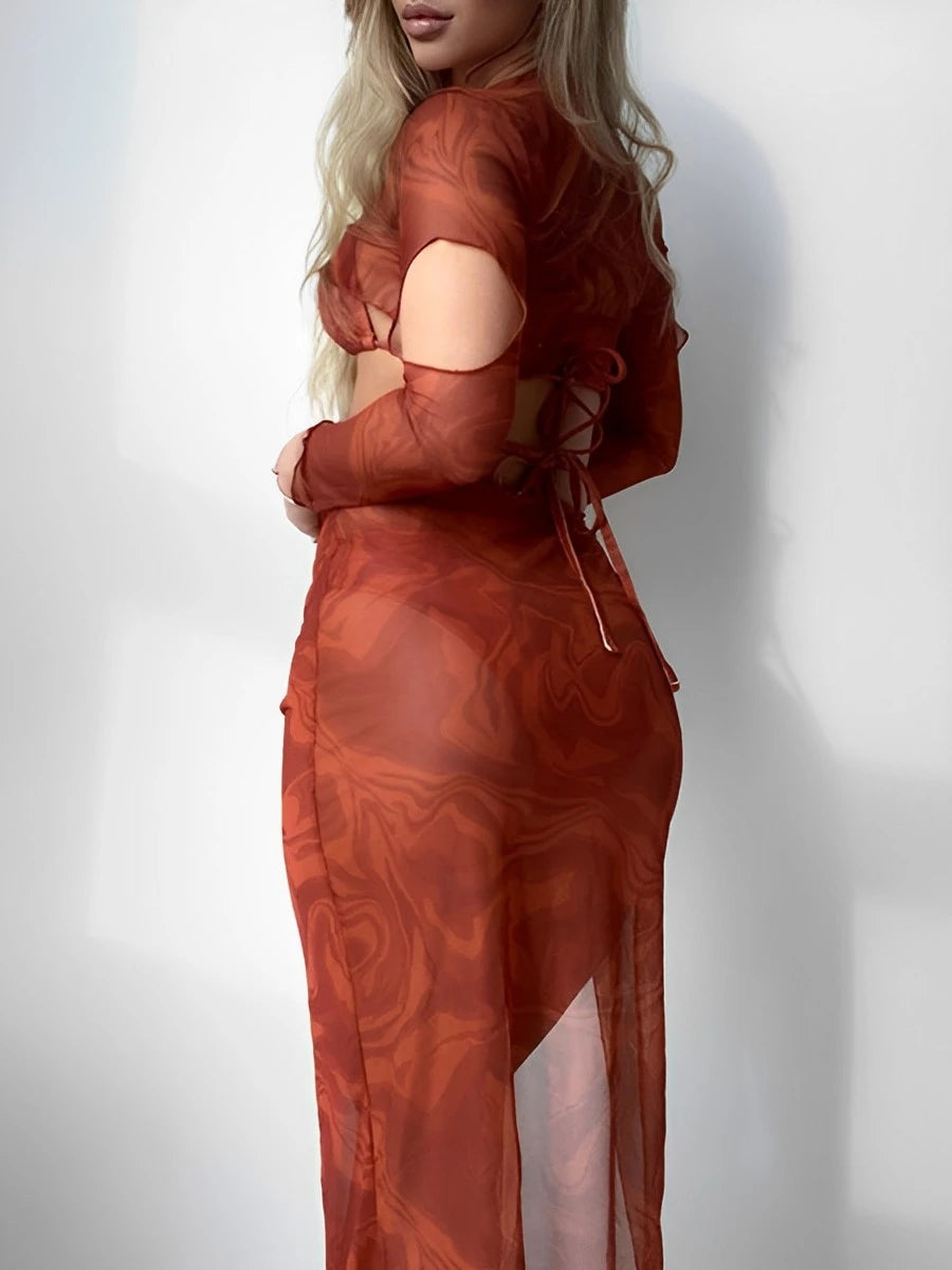2024 Halter String 4 Piece Vent Long Skirt Bikini Swimsuit Women Swimwear Female Bather Bathing Swimming Swim Suit Beachwear