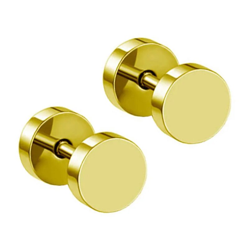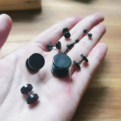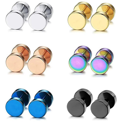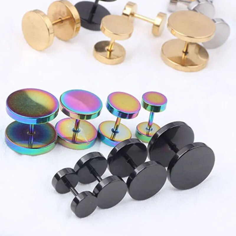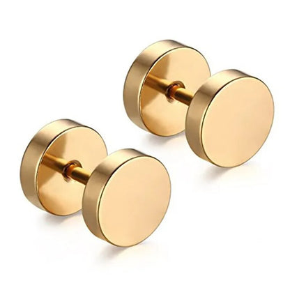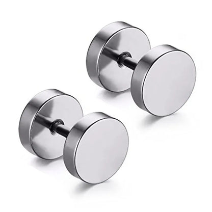 2Pcs/1Pair Gothic Stainless Steel Screw Dumbbell Stud Earrings For Women/Men Hip Hop Rock Hypoallergenic Punk Jewelry