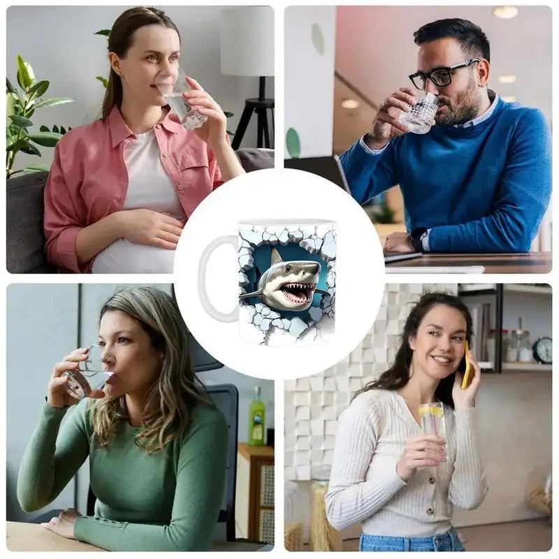 4.Suitable Capacity: These 3D shark ceramic mugs have a capacity of 11 ounces, which is just the right size for your morning coffee or tea. They are easy to hold and sip from, and they fit well in most cup holders.
