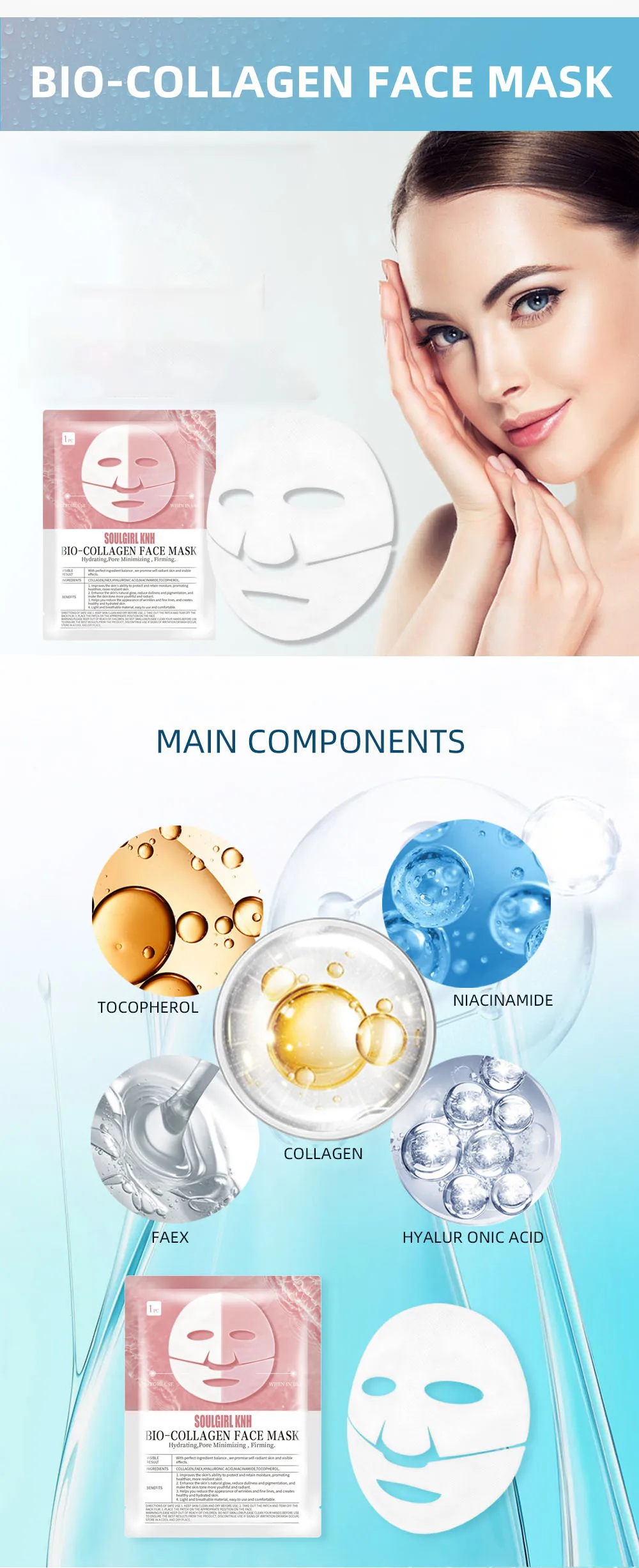 Long-lasting moisturizing, Bio-Collagen Mask keeps skin moisturized.