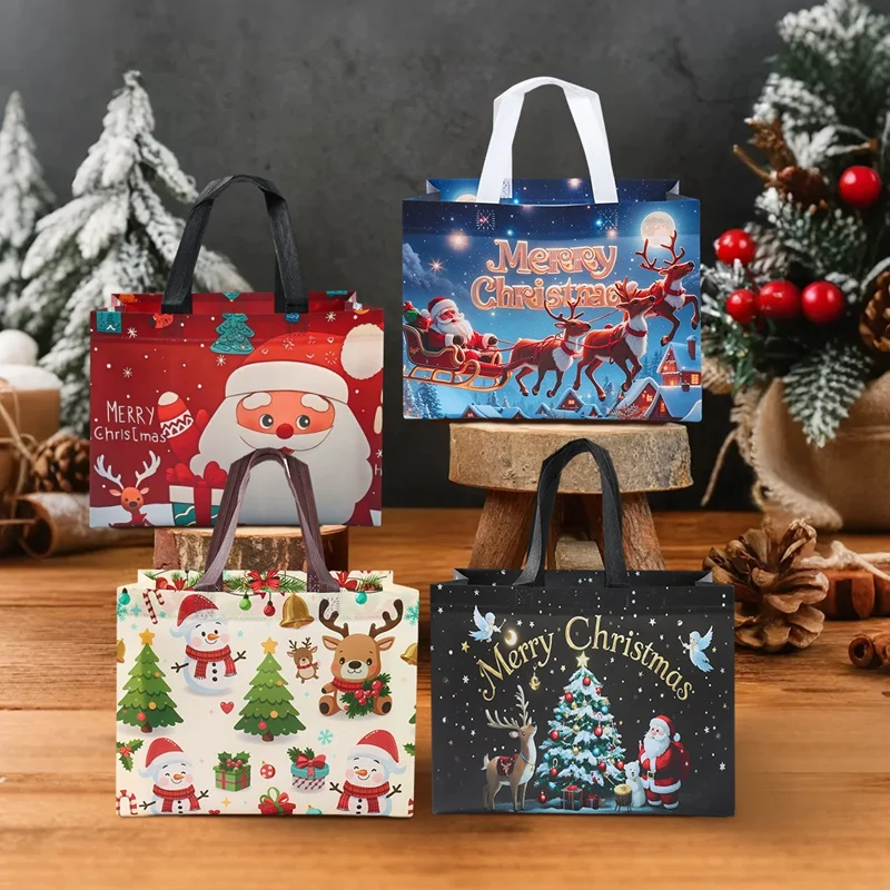 4pcs Christmas Gift Bags Christmas Party Decoration Kids Favors 2025 Xmas Santa Claus Hand Bags Navidad Natal New Year Gift 2026