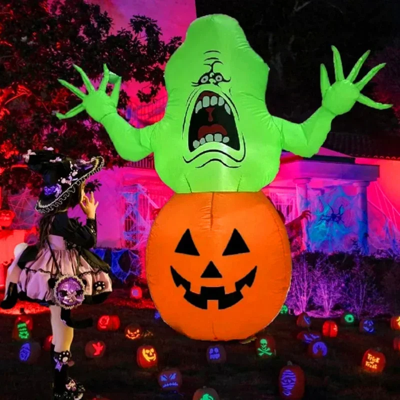 5FT Halloween Inflatable Toy Green Headed Ghost Pumpkin Inflatable Air Model 1.5m Inflatable Air Model Courtyard Decoration Prop