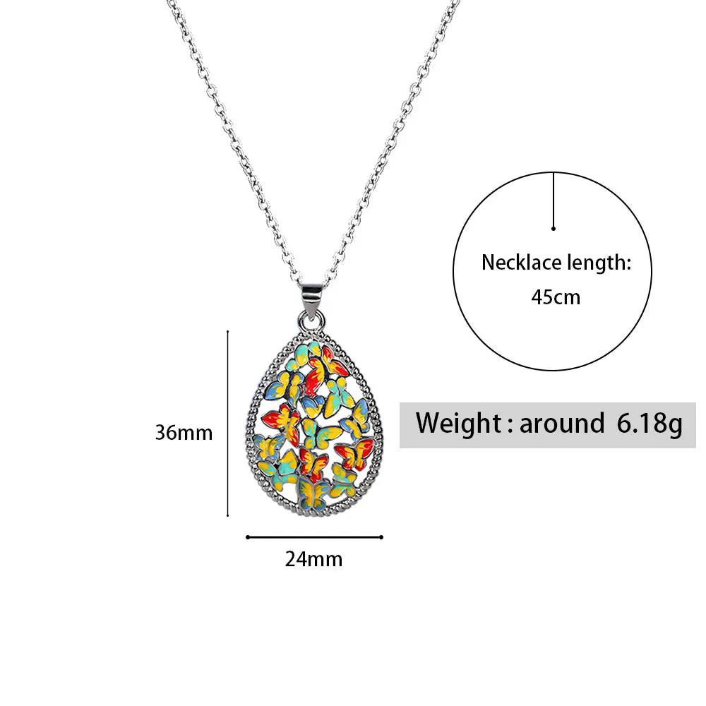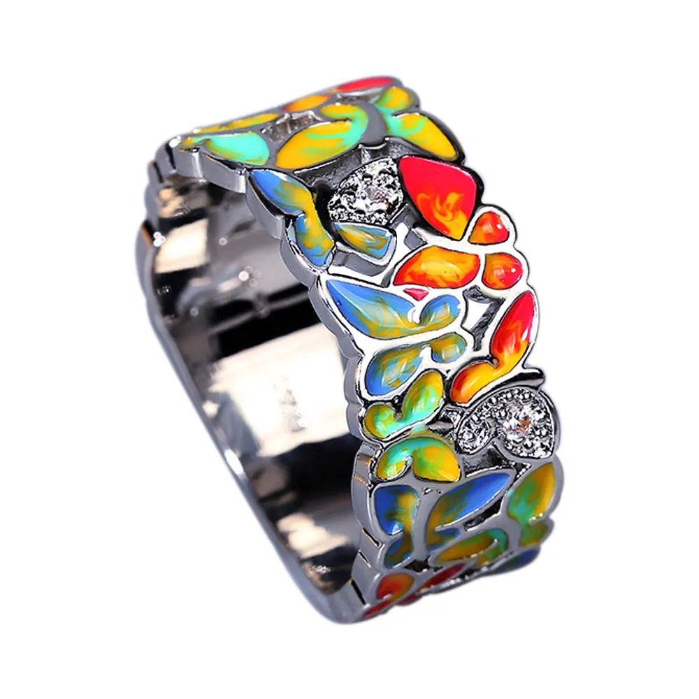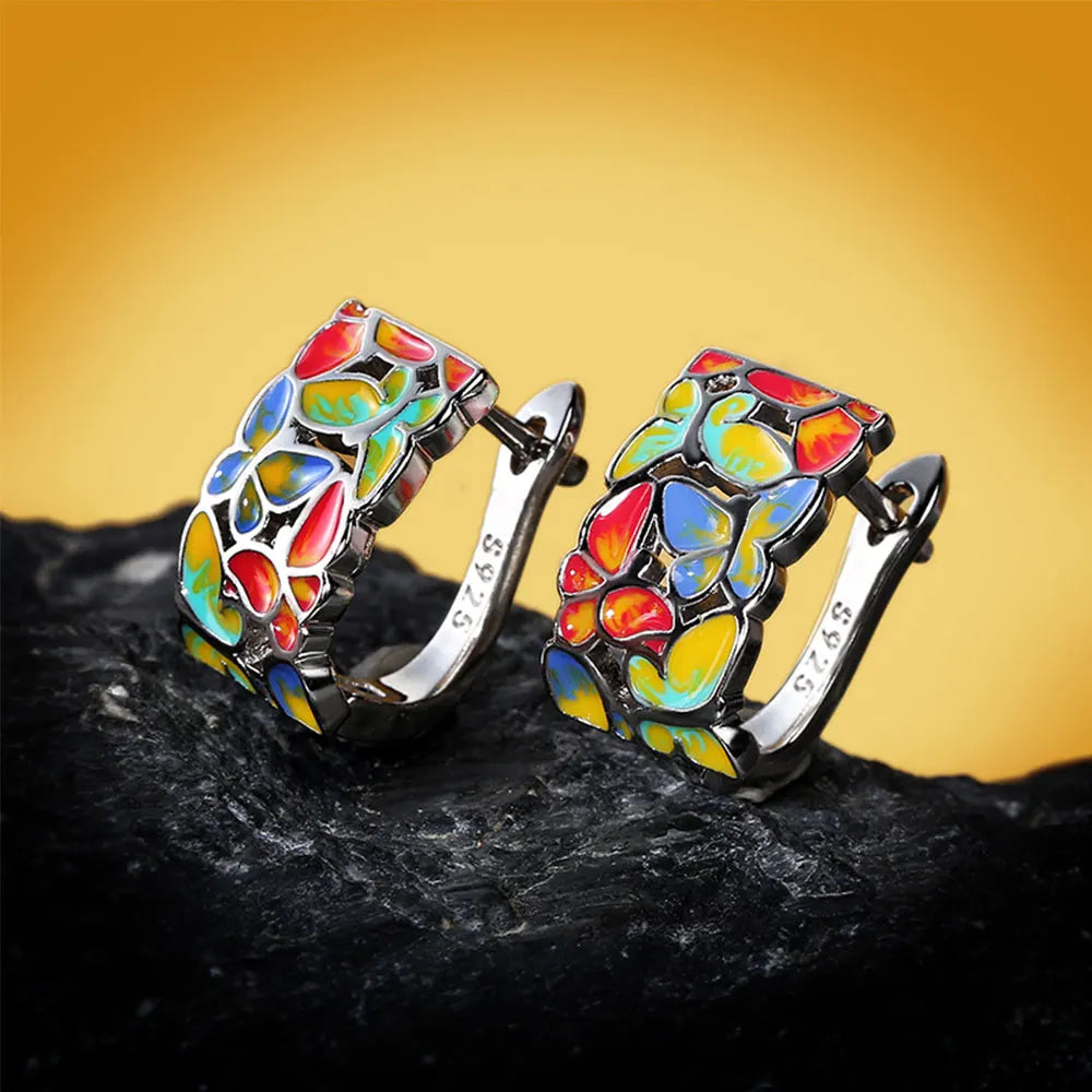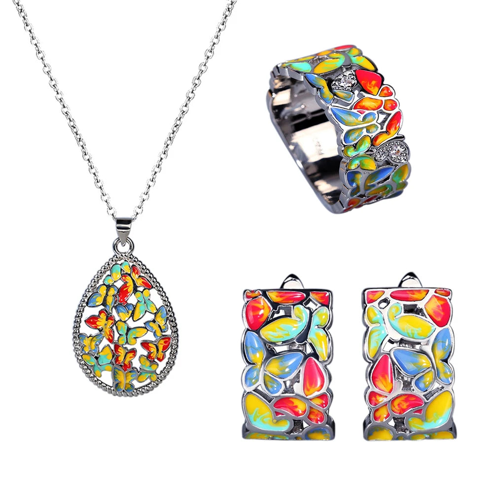 925 Silver Set For Women Color Handmade Enamel Butterfly Ring Jewelry Women's Jewelry Set Ring Necklace Earrings Women's Jewelry