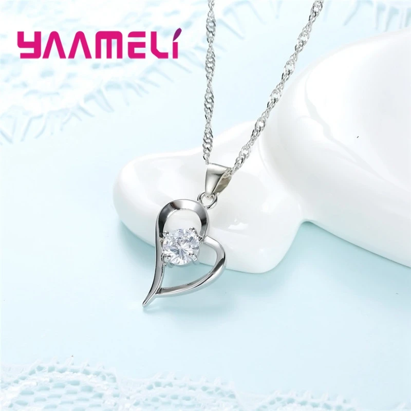 925 Sterling Silver Color Wedding Jewelry Sets for Women Love Heart Hollow Pendants Necklaces Earrings Clear Austrian Crystal