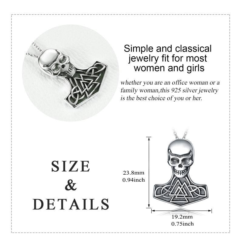 925 Sterling Silver Vintage Celtic Knot Skull Pendant Necklace Jewelry