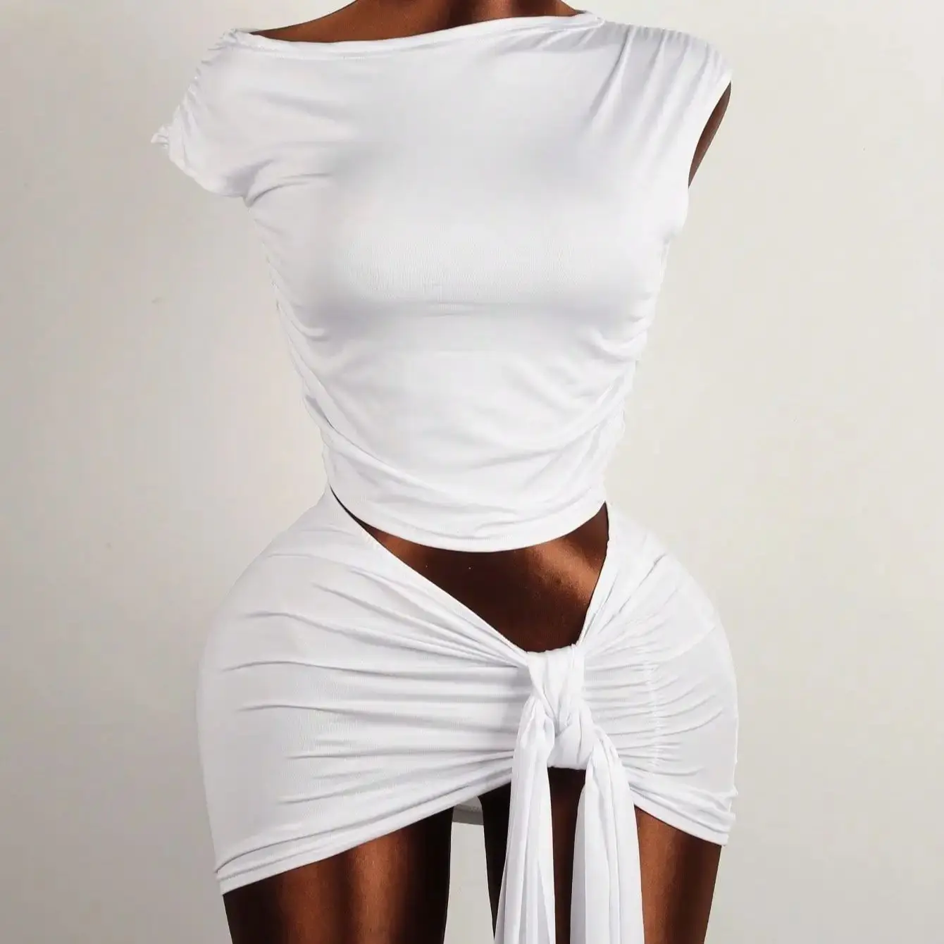 Akaily Summer Street Solid Color Slim Fit Two Piece Sets Sleeveless Asymmetrical Neck Tops+ Bodycon Skirt Set Party For Women