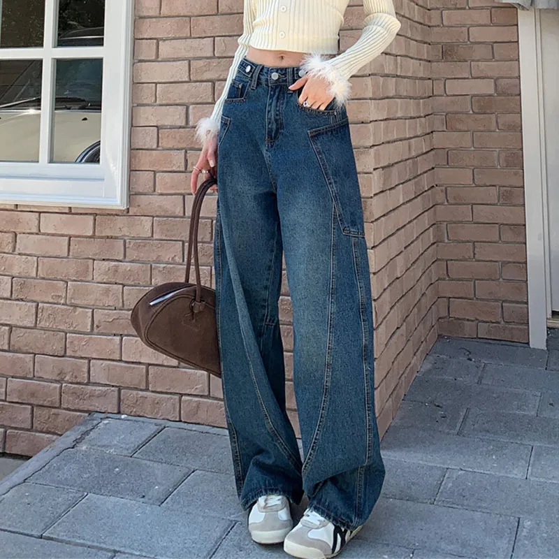 Autumn 2025 High Waist Slim Tapered Wide Leg Jeans Y2K Vintage Blue Denim Pants Dongdaemun Curved Hem for Women