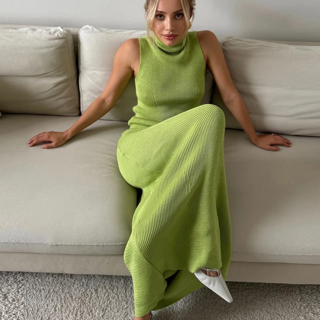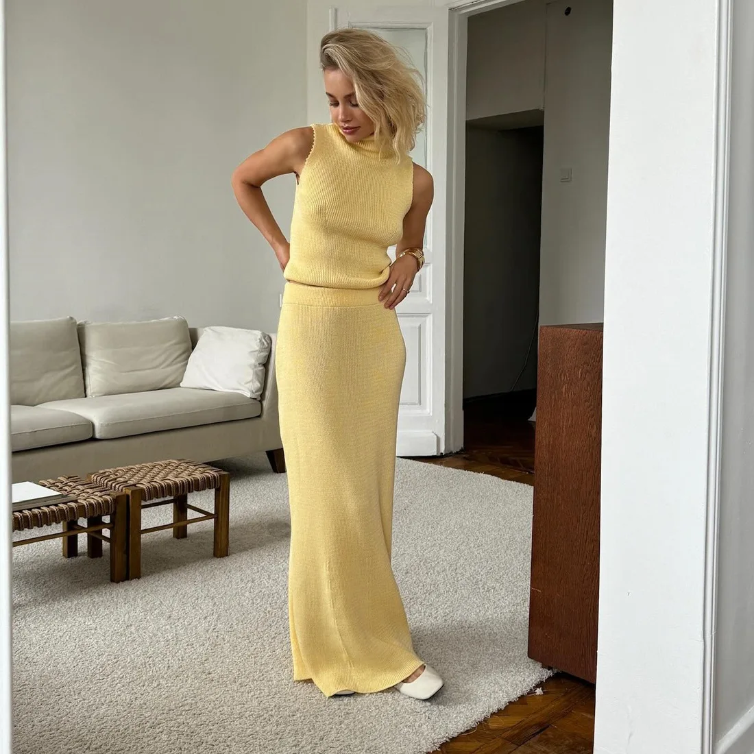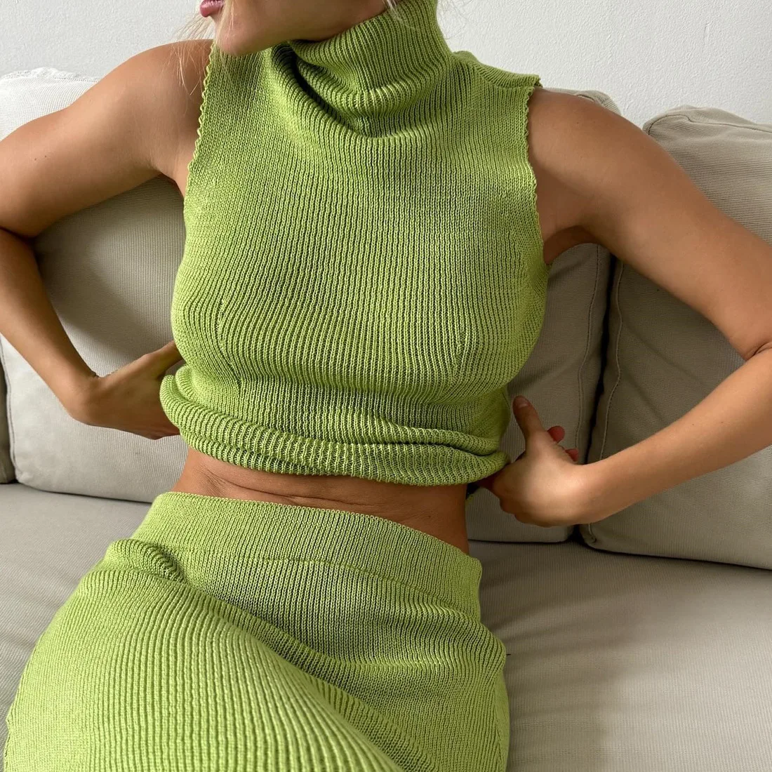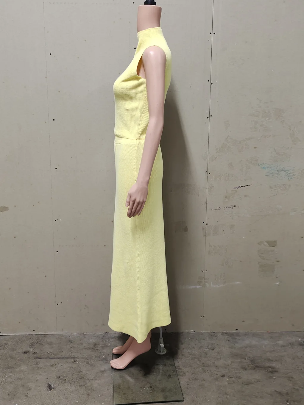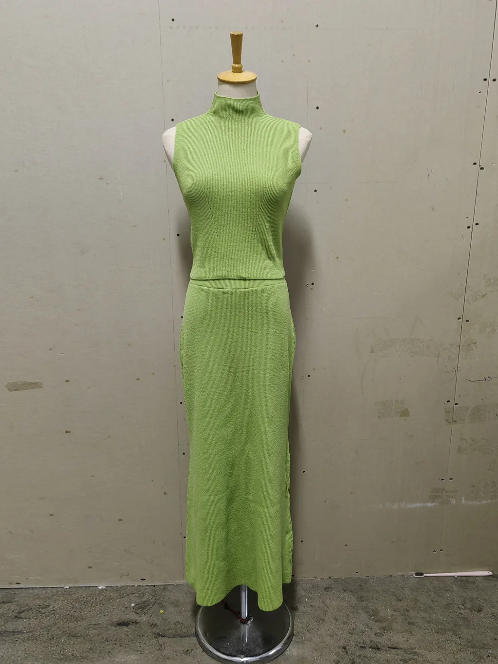 Autumn Elegant Long Skirt Two-piece Set Women's Sleeveless Knitted Turtleneck Vest Slim Skirt Set Female New Fashion Skirt Set