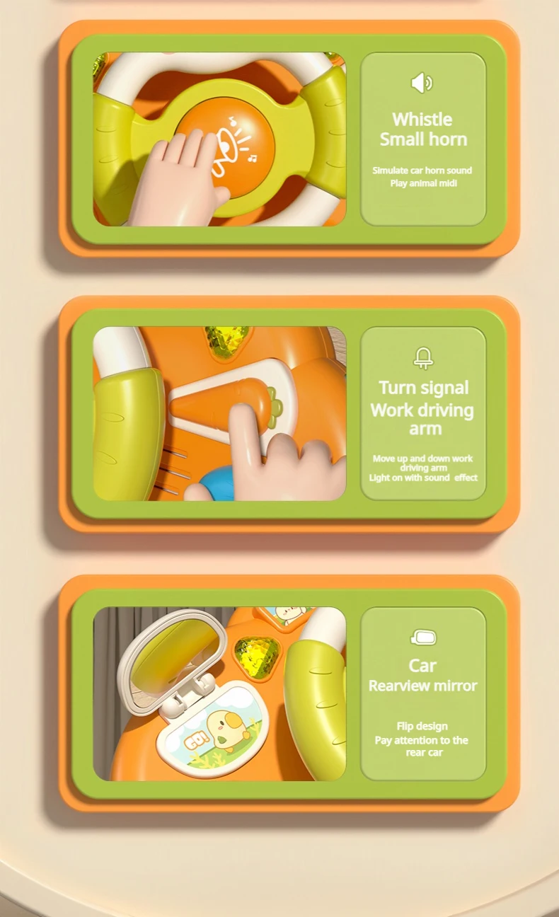 This product is suitable for use in various environments such as baby strollers/cribs, car seats, tabletops, etc., so that children can learn to simulate the fun of driving. It's just so great for kids under 12, it's just so cool!!