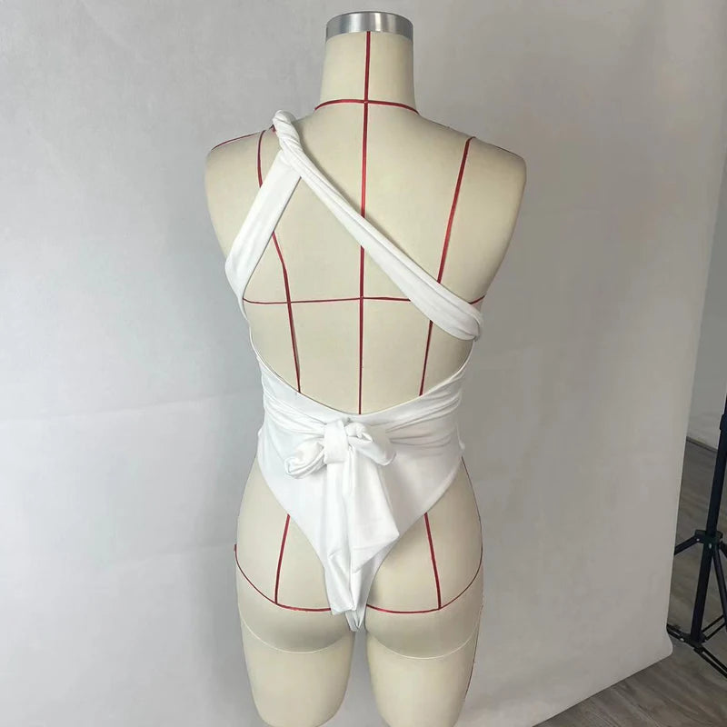 BEACHCICI Women's Bikini One Piece Sexy Solid One Shoulder Slim Tie Up Pleated Hollow Out Nipped Waist Beach Swimwear For Female