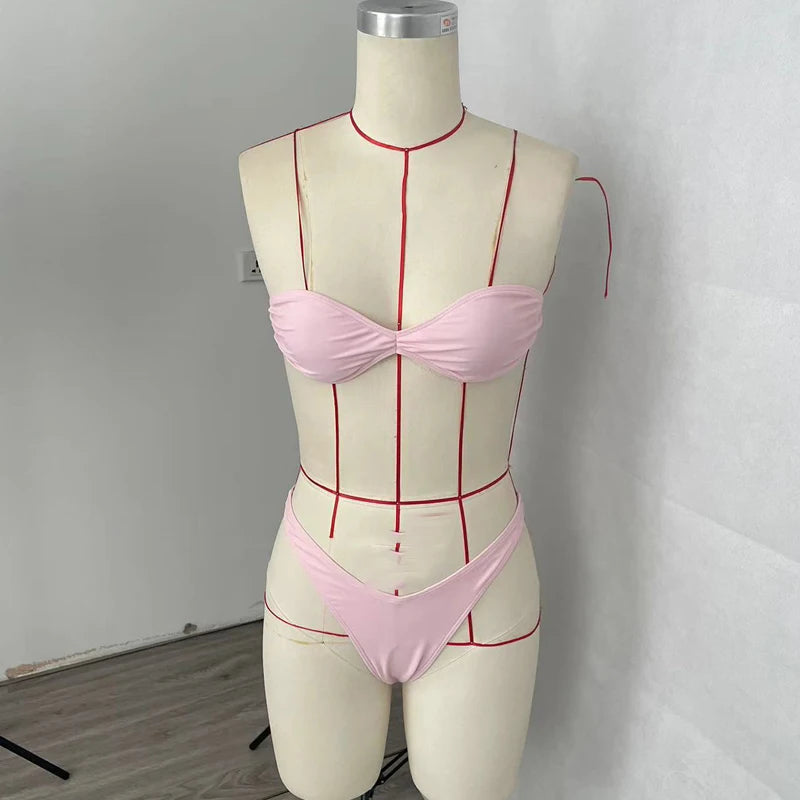BEACHCICI Women's Bikini One Piece Summer Sexy Trending Solid Bandeau Slim Strapless Backless Holiday Beach Swimsuit Swimwear