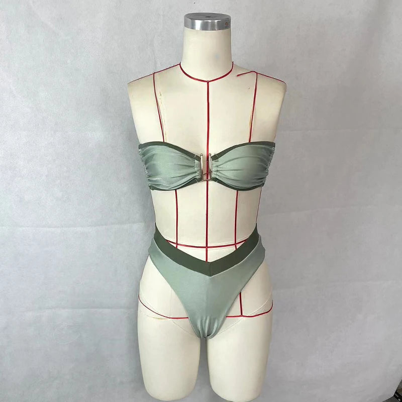 BEACHCICI Women's Bikini Two Piece Summer Sexy Contrasting Color Chest Strapless Wrapping High Waist Beach Vacation Swimsuit