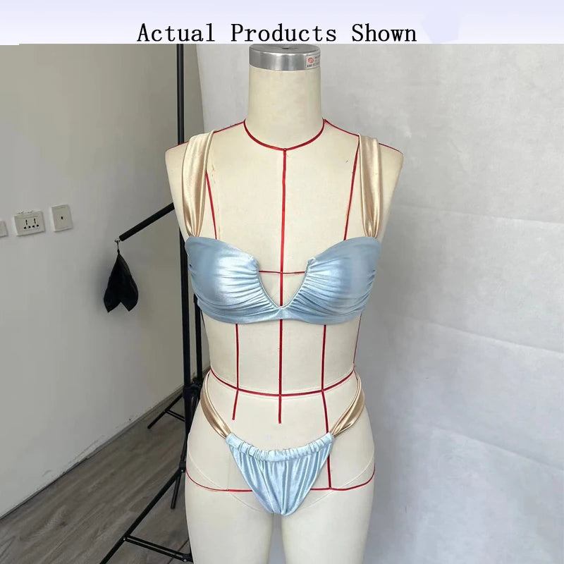 BEACHCICI Women's Bikini Two Set Sexy Elegant Suspender High Waist Contrast Color Lace Up Pleated Thong Vacatio Beach Swimsuit