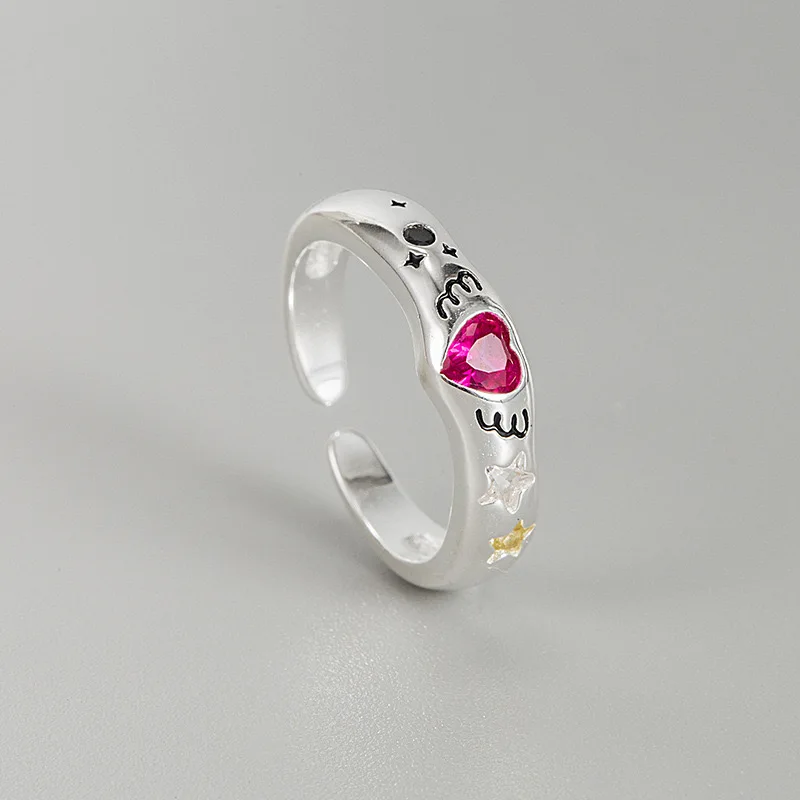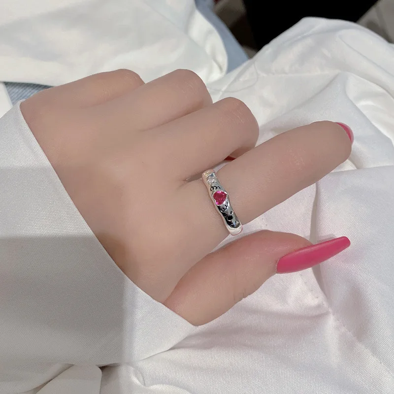 BF CLUB Silver Color Rings for Women Fashion Geometric Handmade Irregular Red Heart Ring Party Christmas Gift