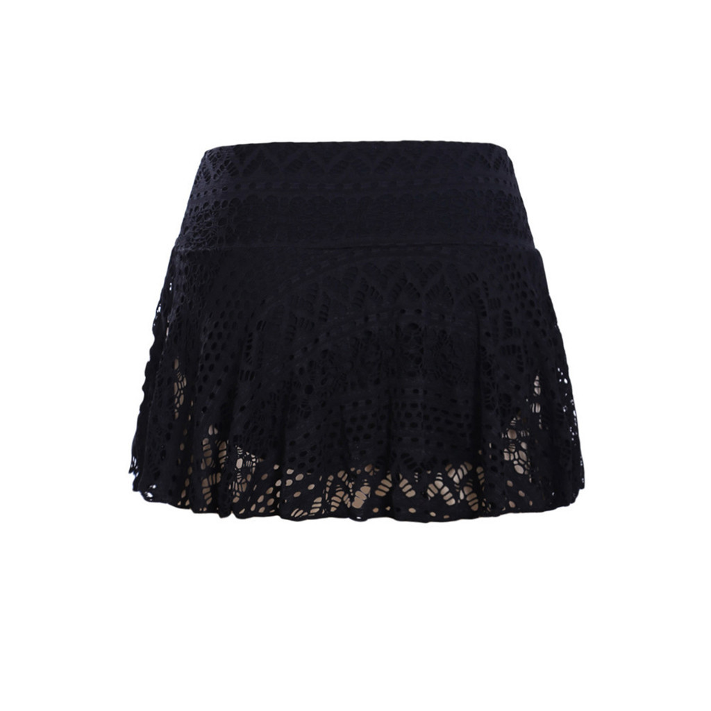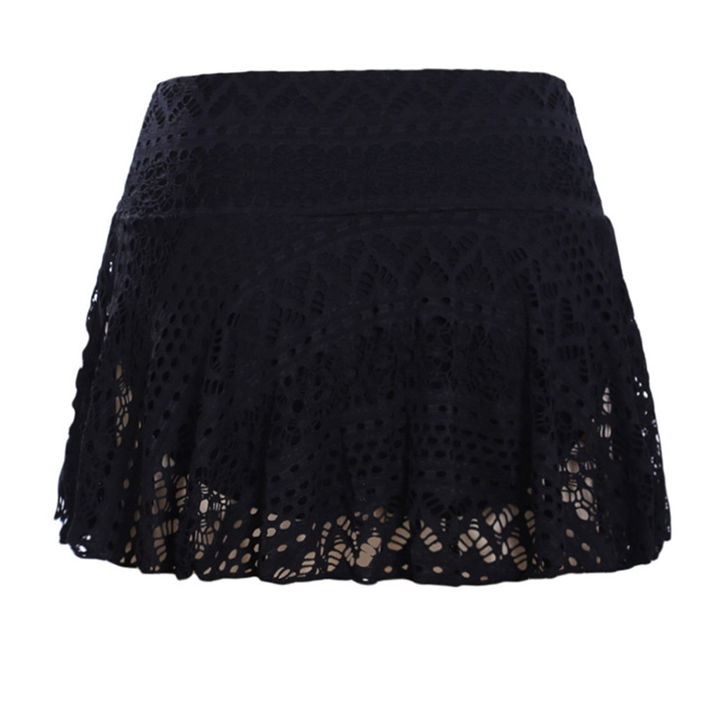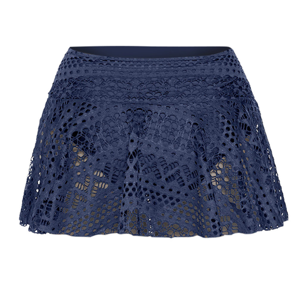 - Crochet lace hollow out swimsuit tankini bottom swim skirt, lace crochet overlay design giving it a mysterious feminine vibe.