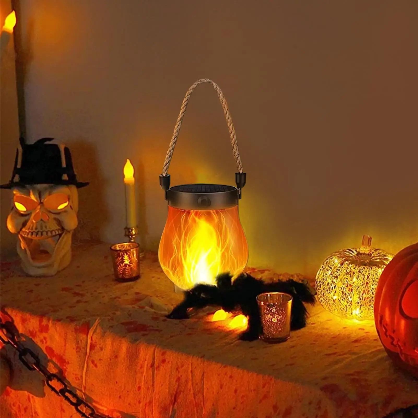 1.Eerie Festive Touch: Crafted to improve outdoor settings, this solar lantern showcases a flickering flame effect and Halloween-inspired charm, delivering a horror yet captivating atmosphere for festive garden decoration