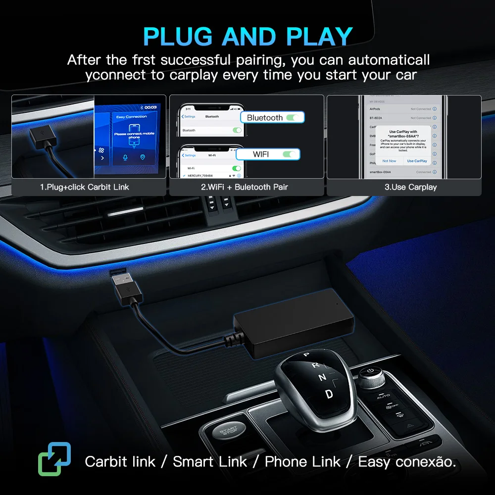 CARABC NEW Plug and Play Carbit link to Apple Wireless CarPlay Android AUTO Box Car Navigation Smart Car Machine Interconnection