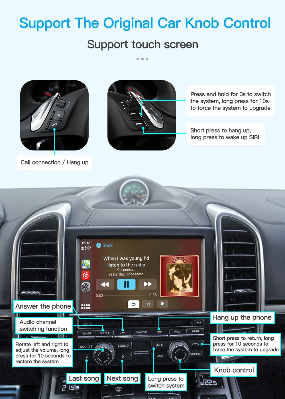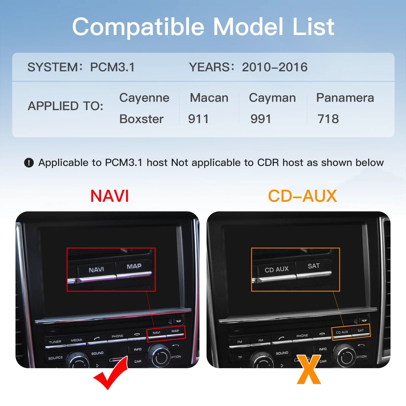 CARABC Wireless Carplay Android Auto Fits For Porsche PCM3.1 Panamera Cayenne Cayman Macan Boxster 911 991 718 Reverse Camera
