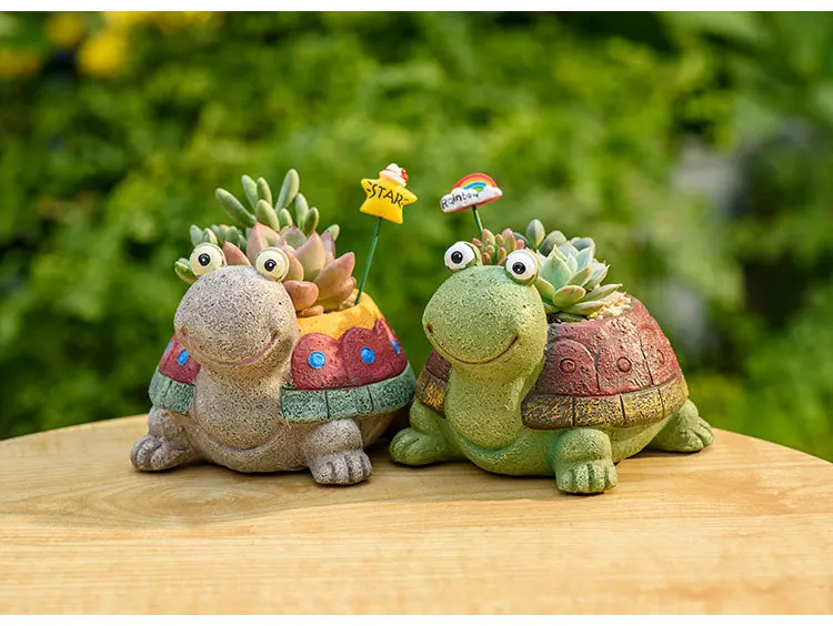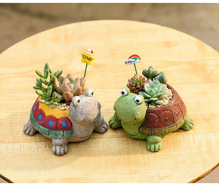 Cute Cartoon Turtle Planter for Succulents Cactus Plants, Decorative Flower Pot for Mini Bonsai, Fairy Garden Tabletop Decor