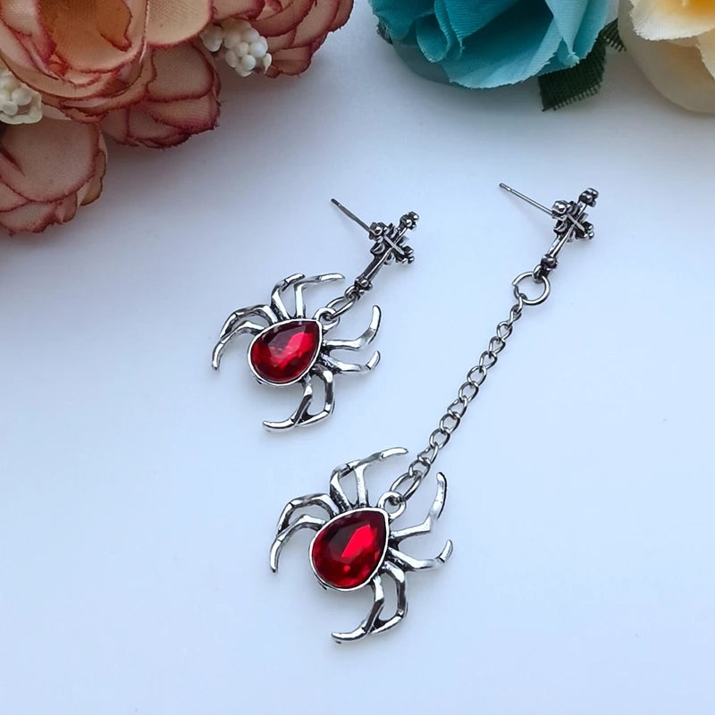 Dark Style Goth Punk Asymmetric Black Rock Matte Black Spider Stud Earrings Steampunk Earrings Halloween Costume Accessories