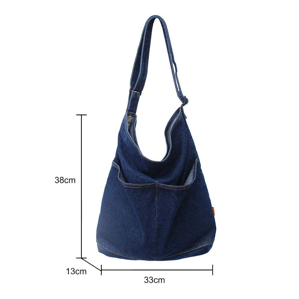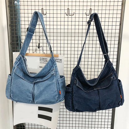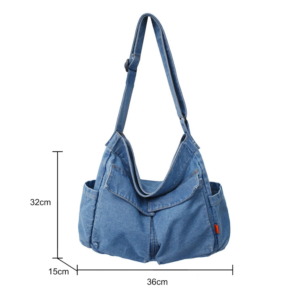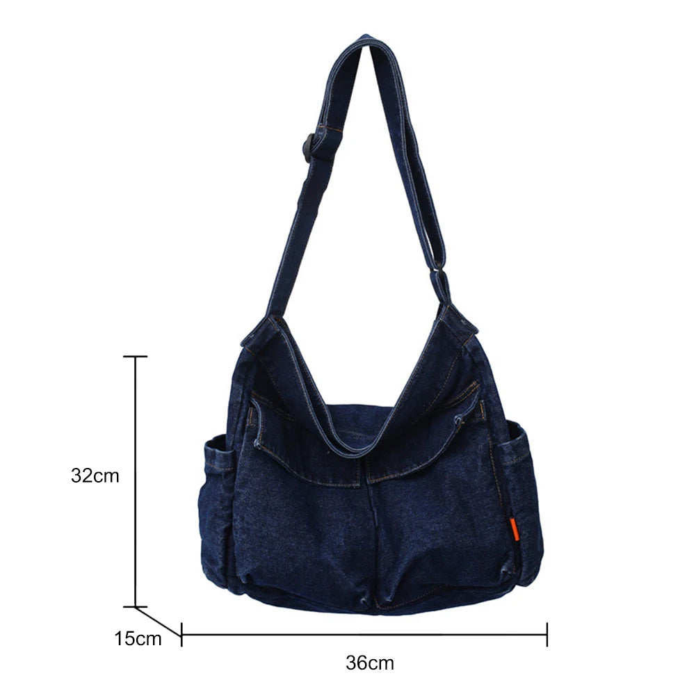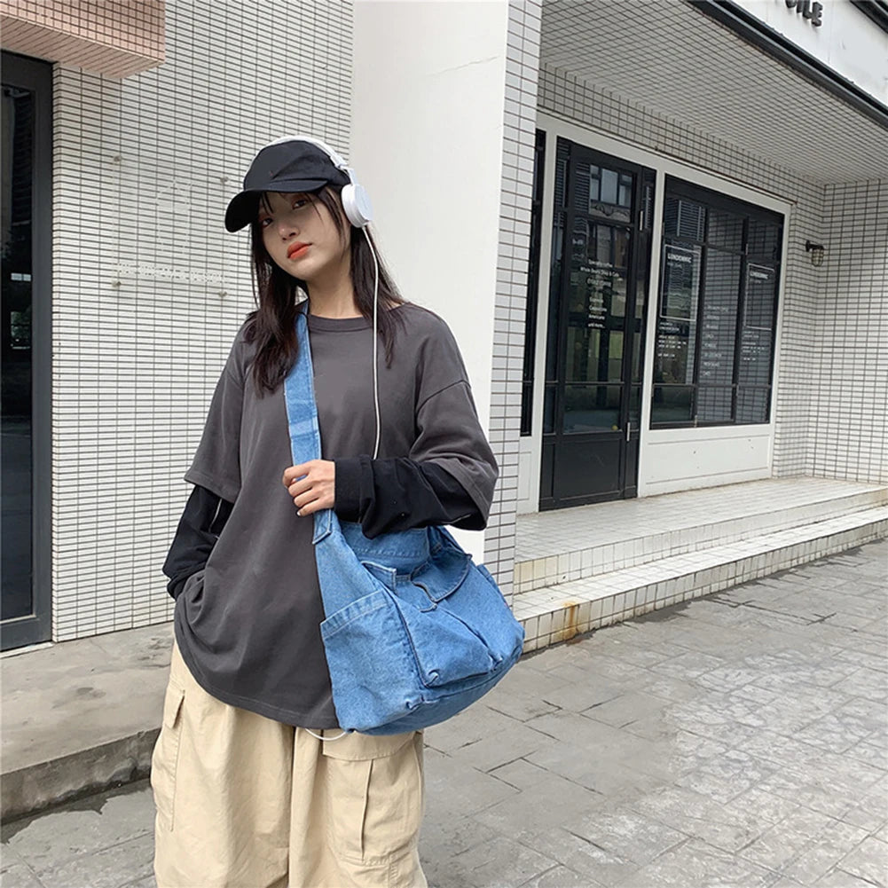 Japanese Harajuku Shoulder Bags Retro Denim Messenger Handbag Large Capacity Commuter Crossbody Bag for Women Travel School Office