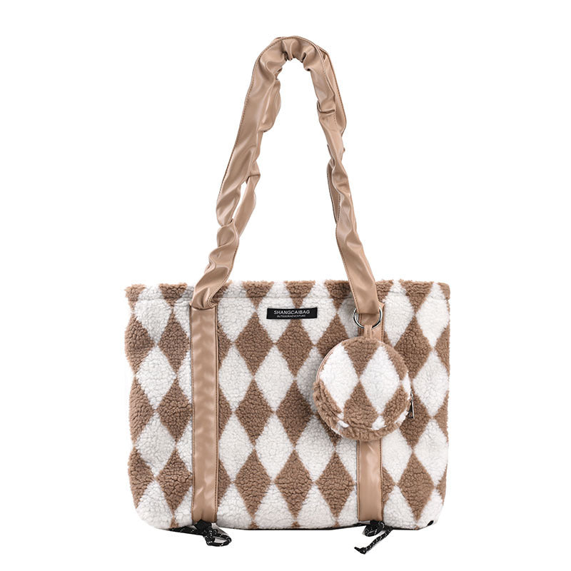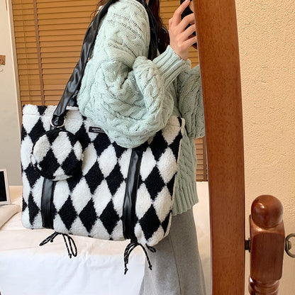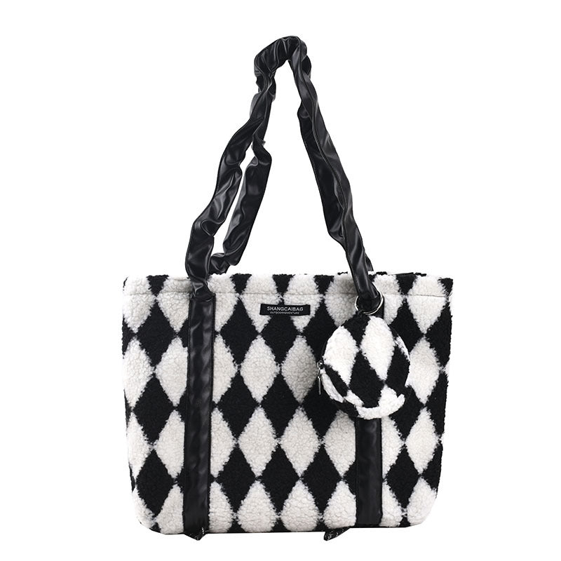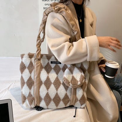 Diamond Check Color Contrast Personality Plush Coin Purse Pendant