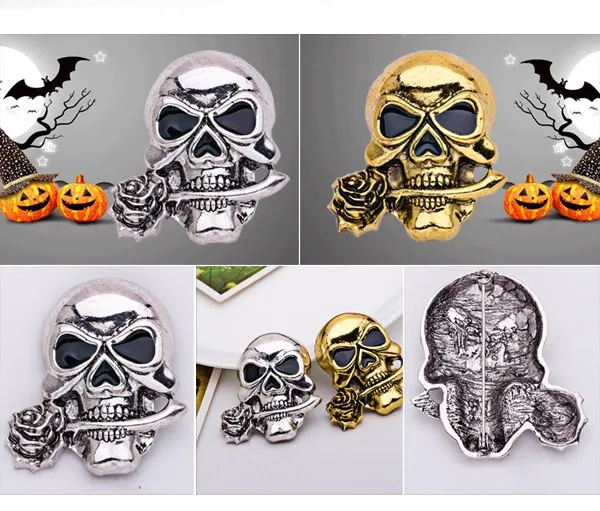 European and American punk style new Halloween series ghost head brooch skull head female brooch inlaid rhinoceros coat accessor