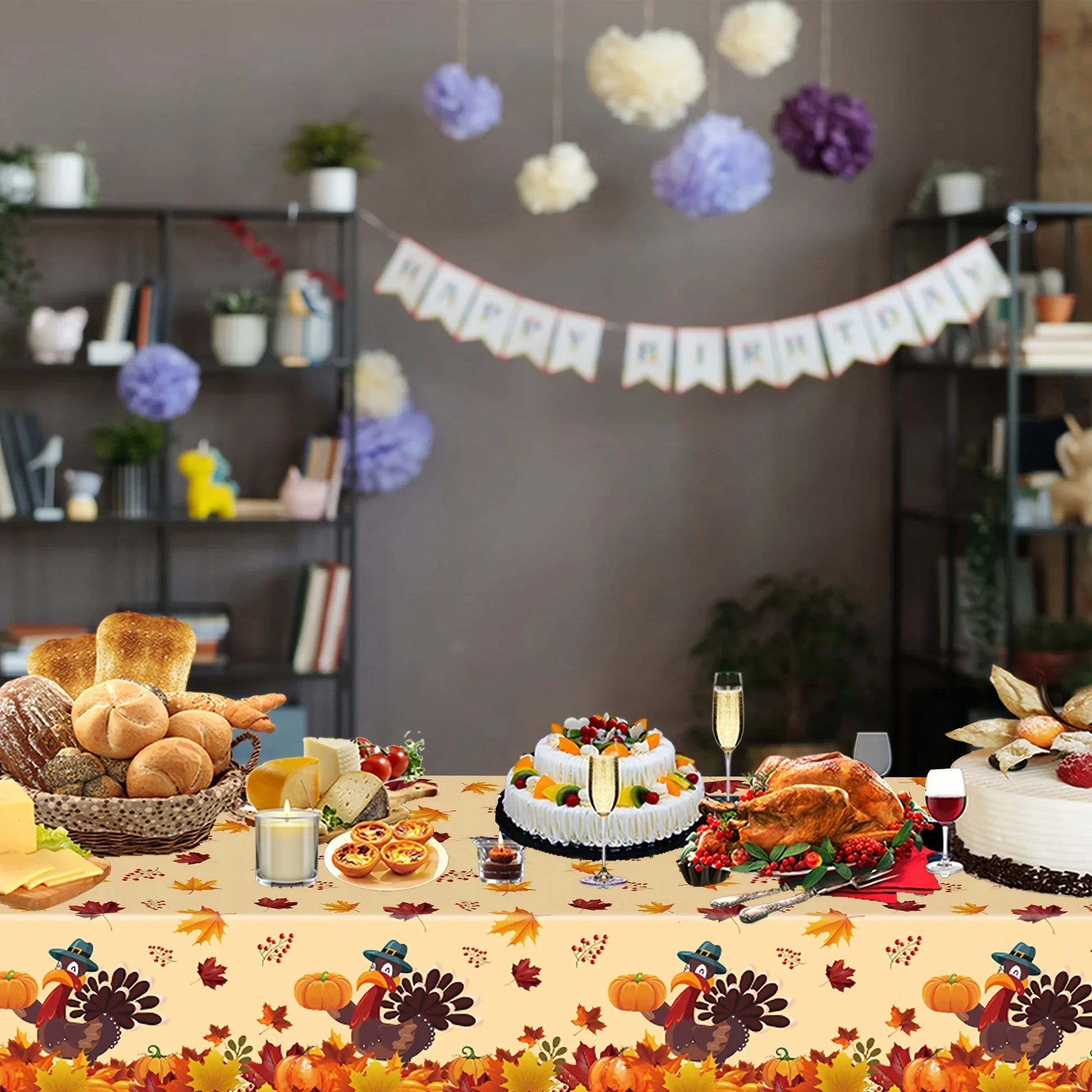 Fall Thanksgiving Rectangular Tablecloths Hello Autumn Pumpkin Maple Leaf Pattern Table Covers Reusable Party Dining Table Decor