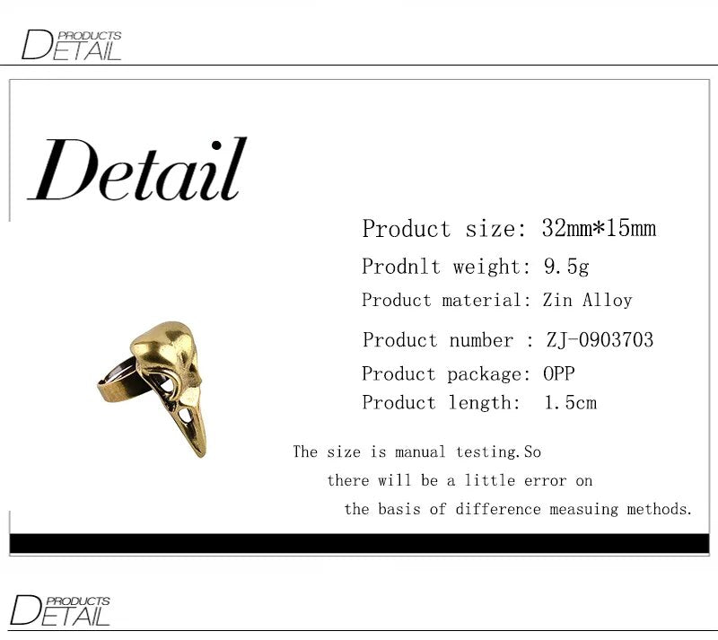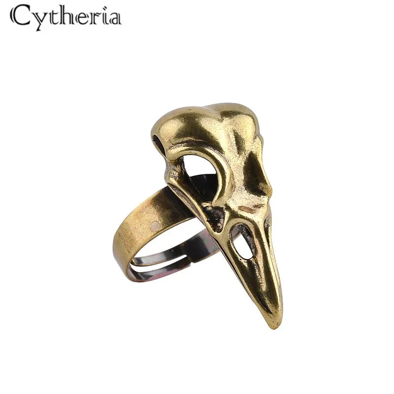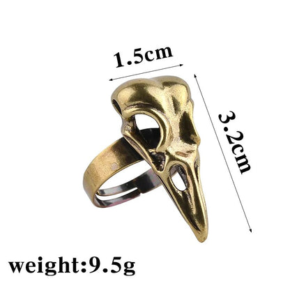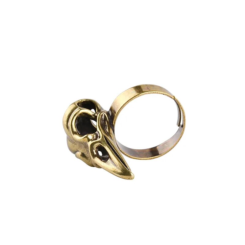 Fashion Vintage Personality Animal Ring Men Bird Head Skull Ring Adjustable Cool Punk Crow Head Party Ring Halloween Jewelry