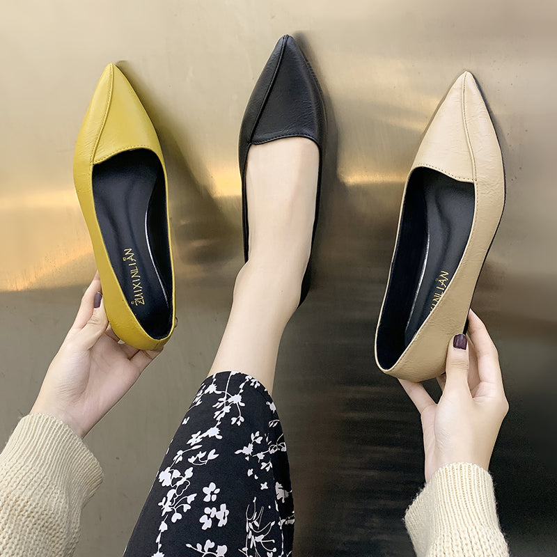 Flat shoes female 2021 early spring new pattern Sharp point Flat bottom comfort Doug shoes Internet celebrity Soft skin soft sole Versatile Ladle shoes tide