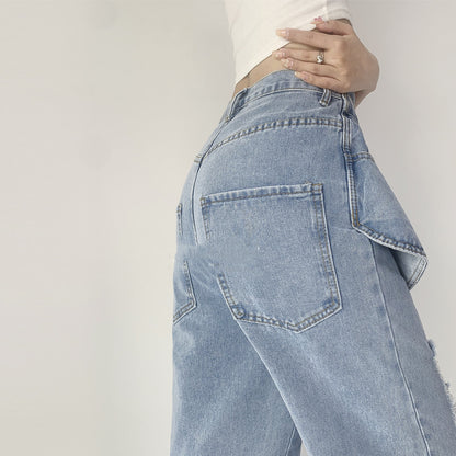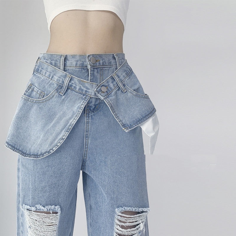 Fried Street American Hot Girl Crossover Jeans Women's High Waist Loose