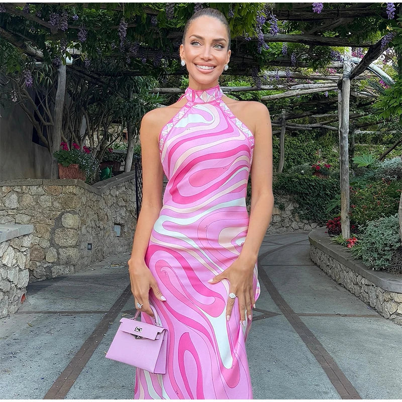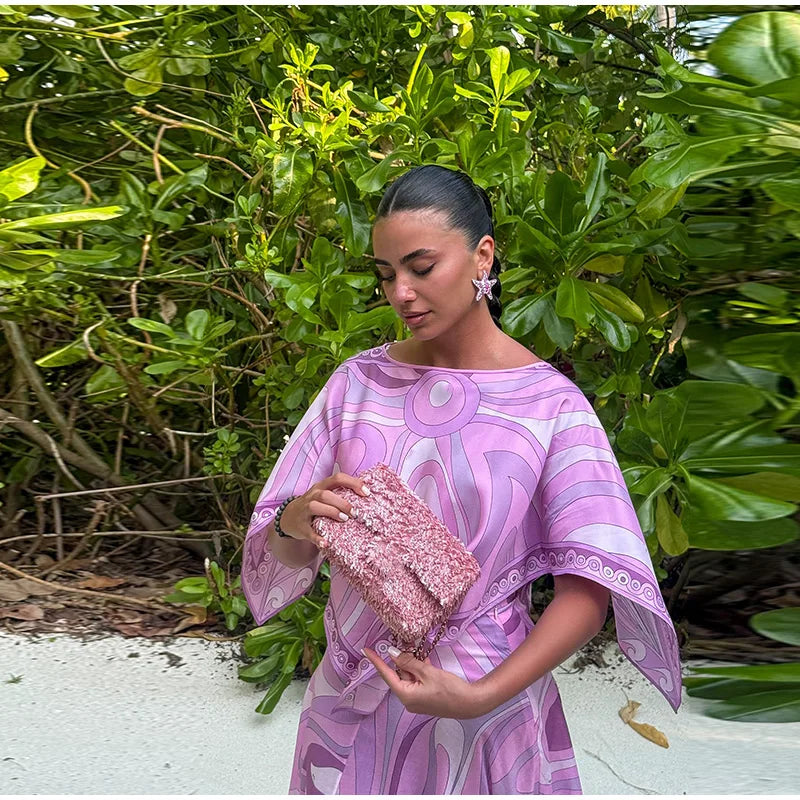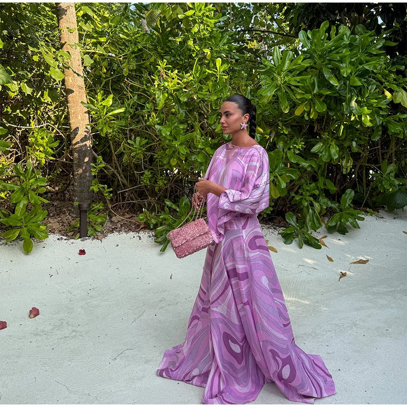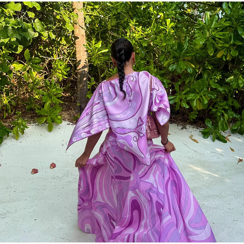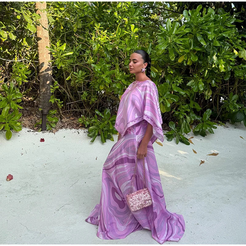 Geometric Print Cape Women's Set Loose Batwing Sleeve Top Flowy Maxi Skirt 2025 Summer Elegant Suit Holiday Fashion Lady Sets