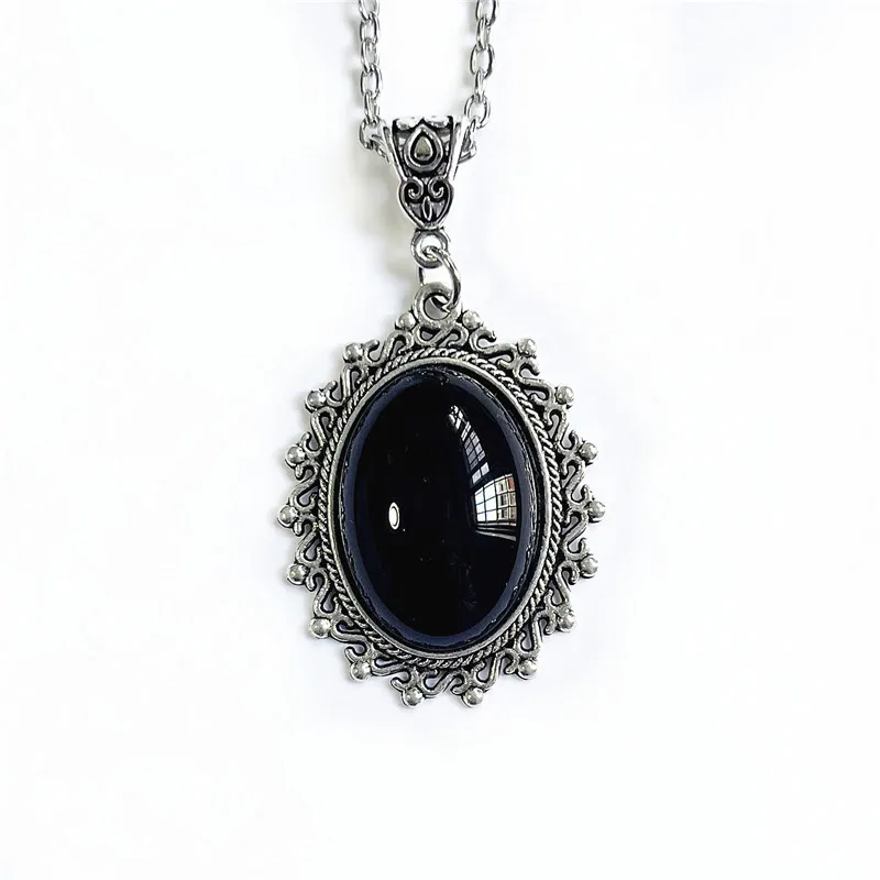 Gothic Retro Inlaid Black Gemstone Embossed Pendant Halloween Witch Necklace Wed...