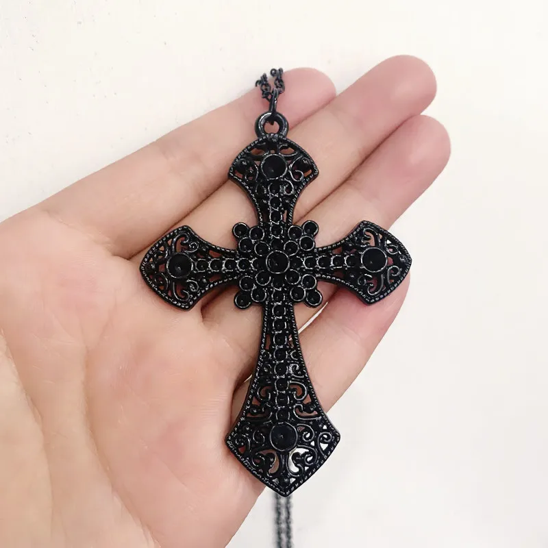 Gothic Black Large Cross Pendant Necklace Halloween Decoration Wedding Banquet H...