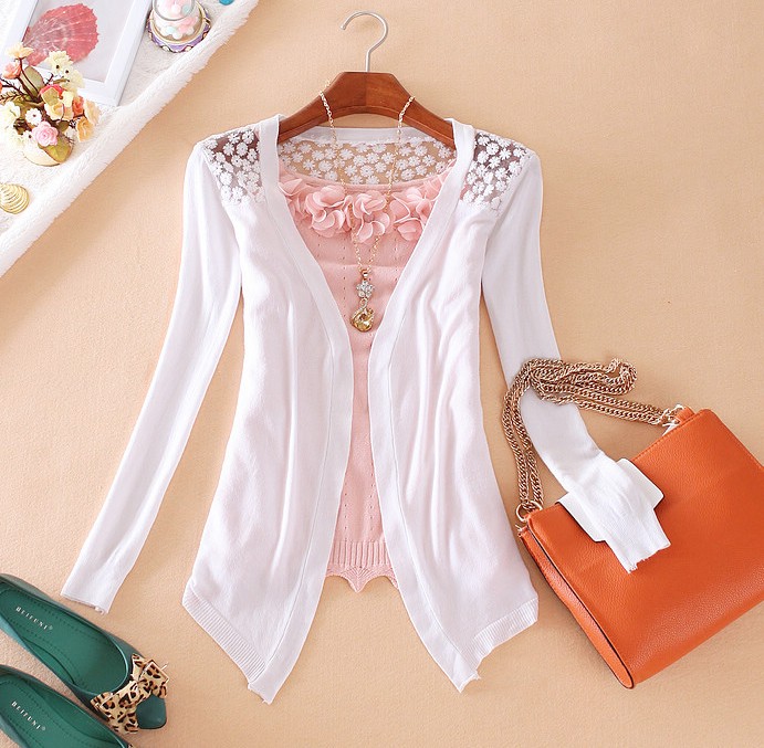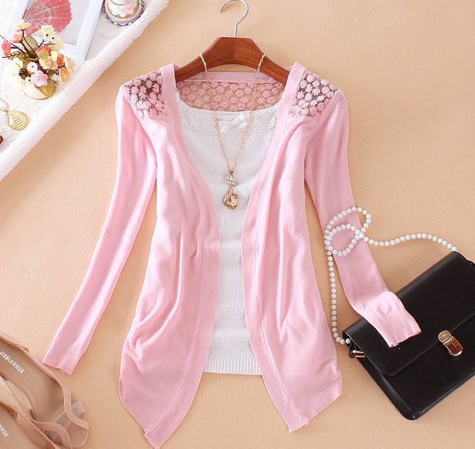 GREMISS New Summer Fashion Women Lace Sweet Candy Color Crochet Hollow Out Knitwear Blouse Full Sweater Cardigan Open Stitch