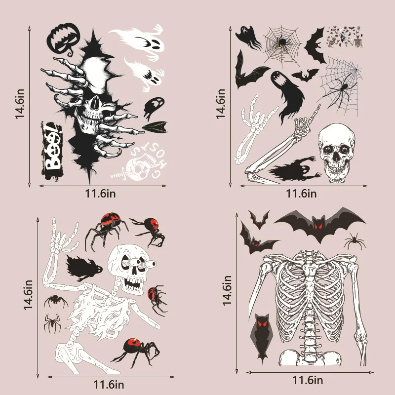 Halloween Decorations Window Clings Halloween Window Stickers Bat Skull Skeleton Stickers Halloween Window Decor for Glass Wall