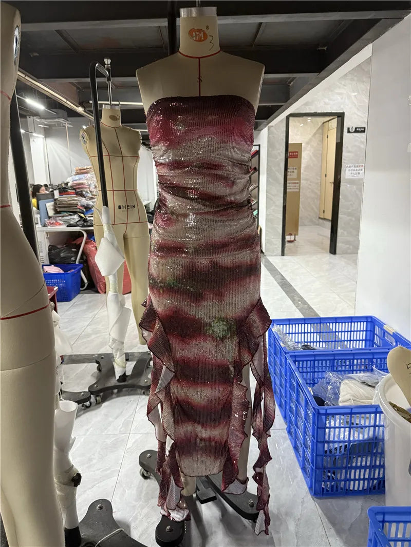 Halloween Shark Tale Costume for Adults Oscar and Lola Couple Costume Halloween Women Sparkle Ruffle Hem Strapless Fish Cosplay