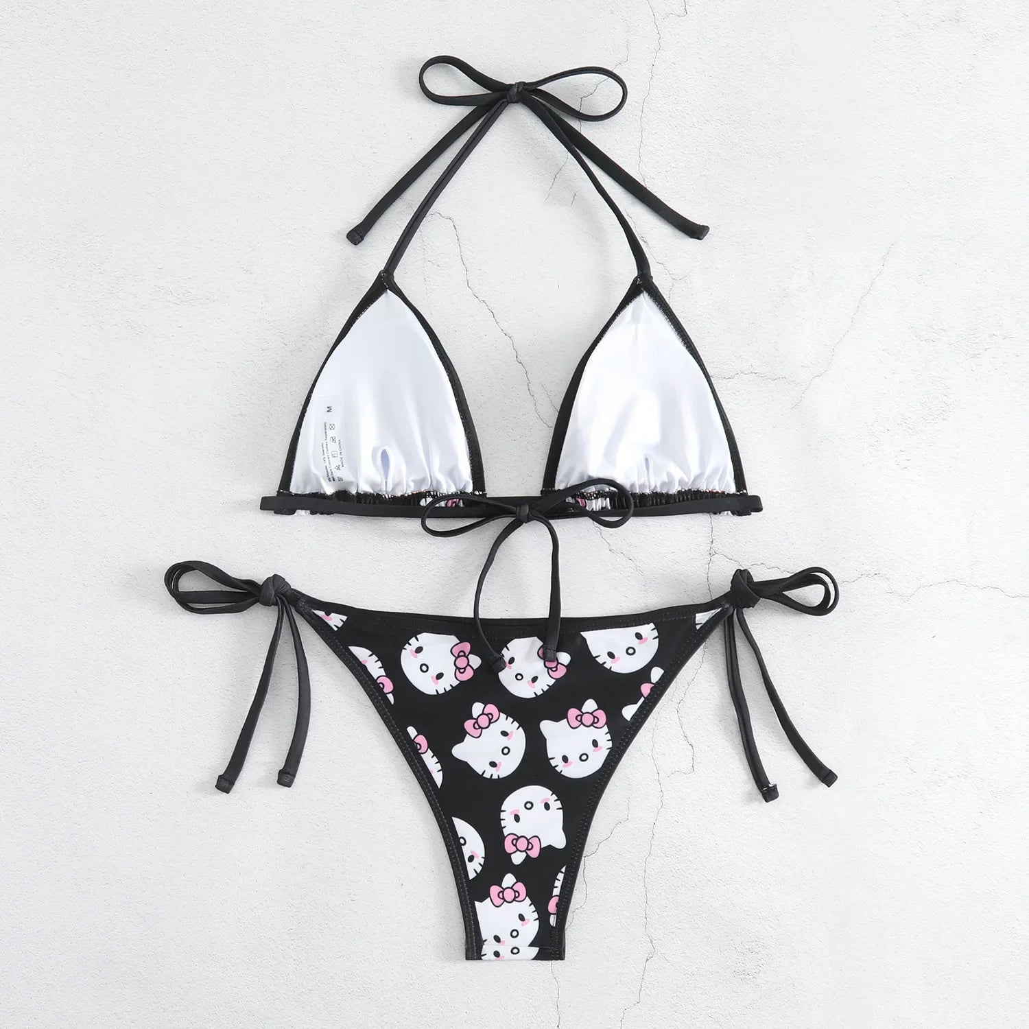 Hello Kitty Bikinis Set Kawaii Y2K Summer 2024 New Women Swimsuit Beach Strappy Panties Sexy Swimwear for Girl