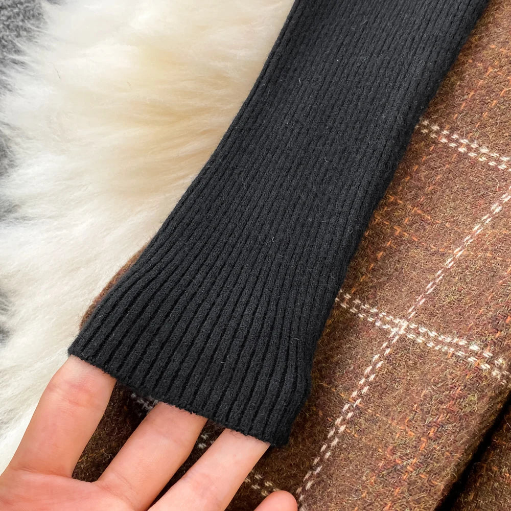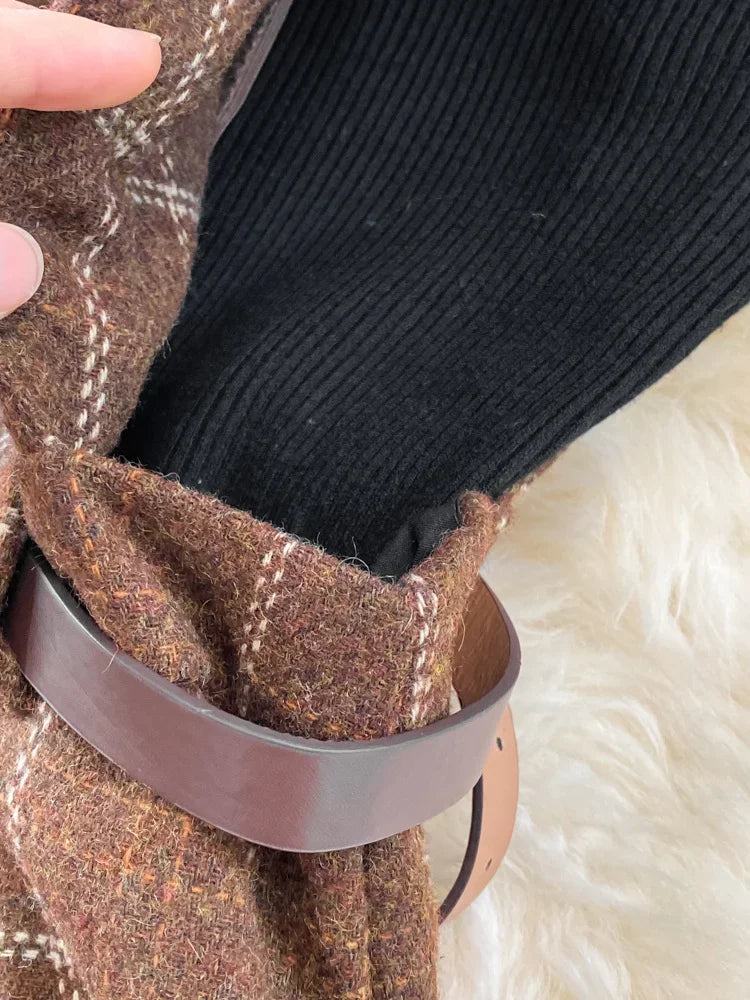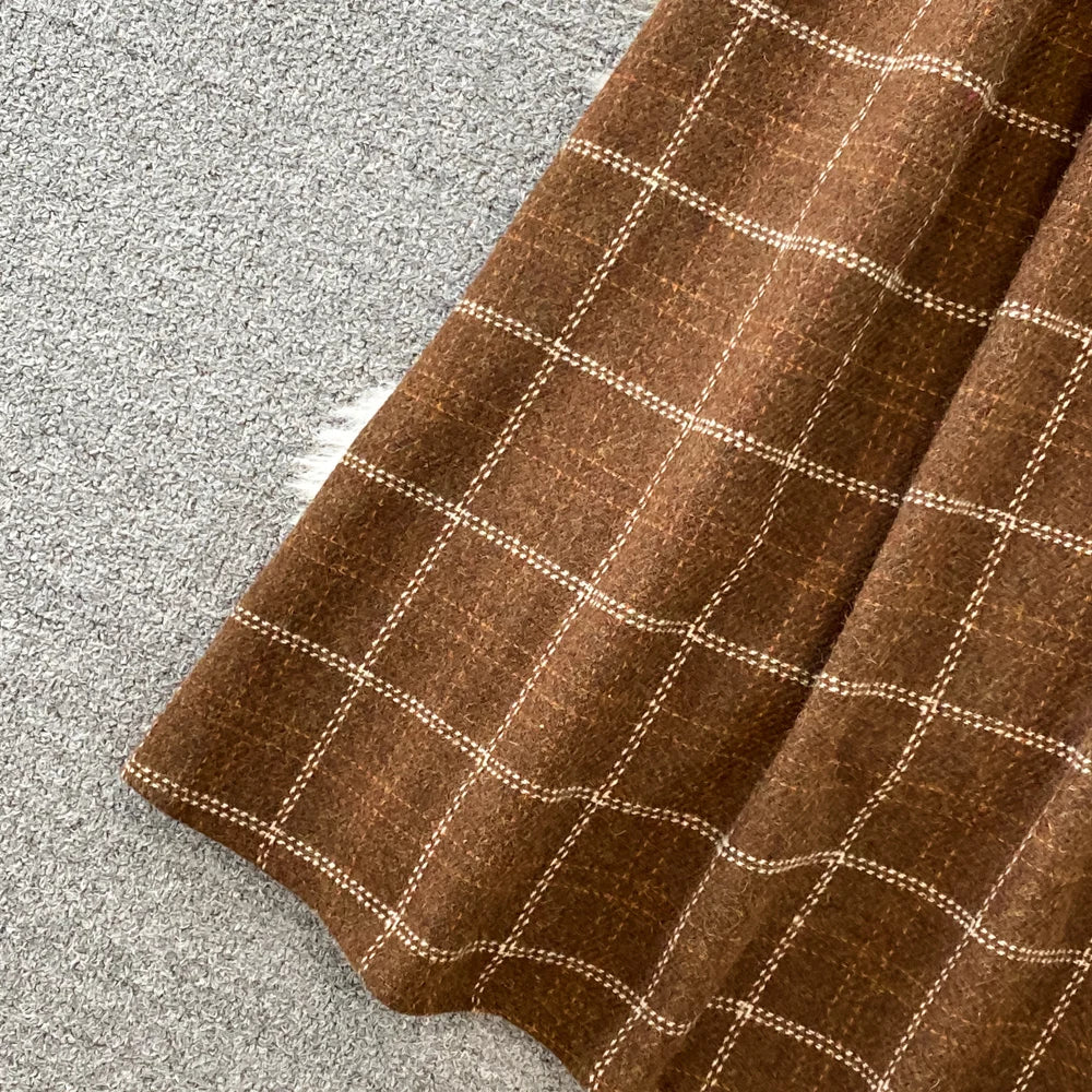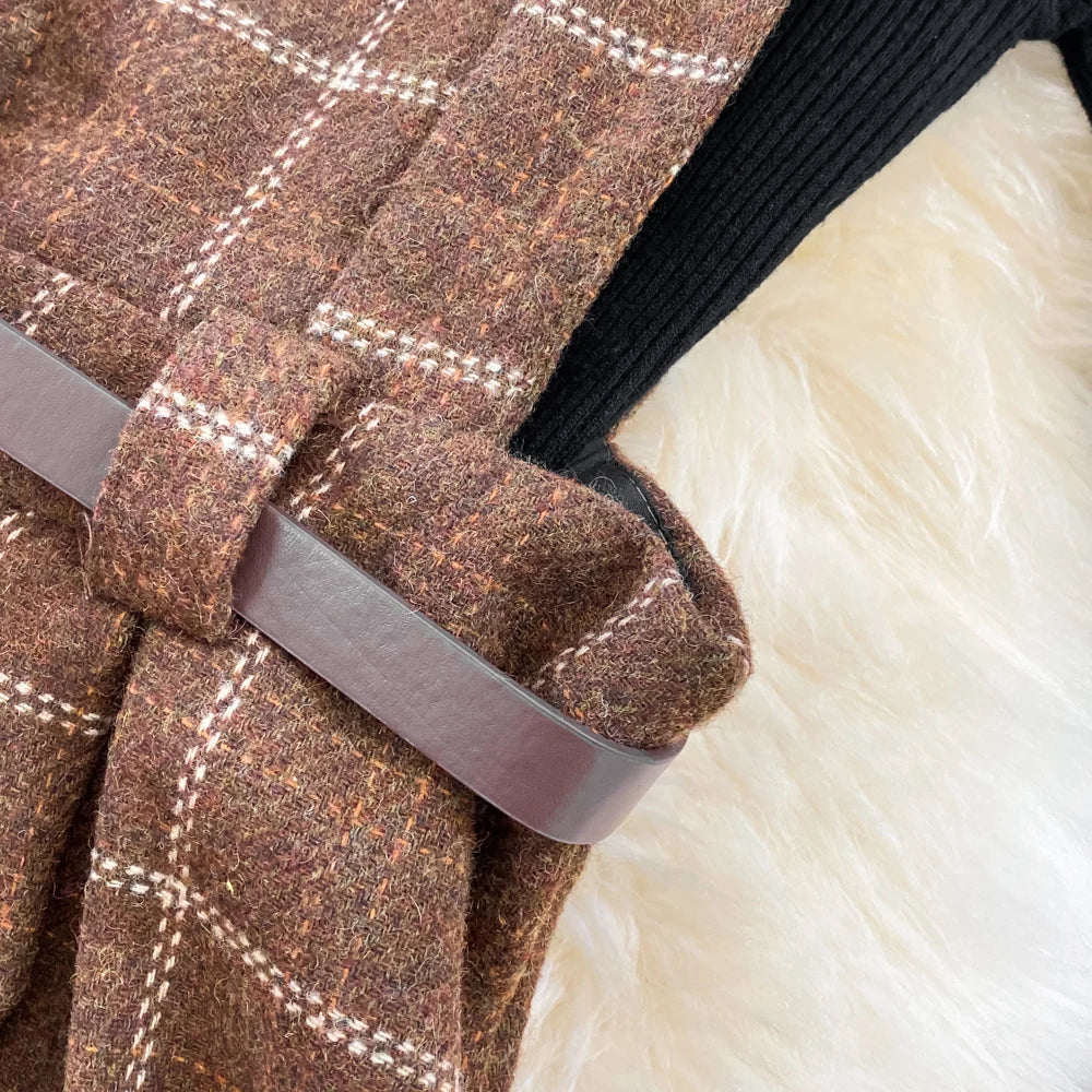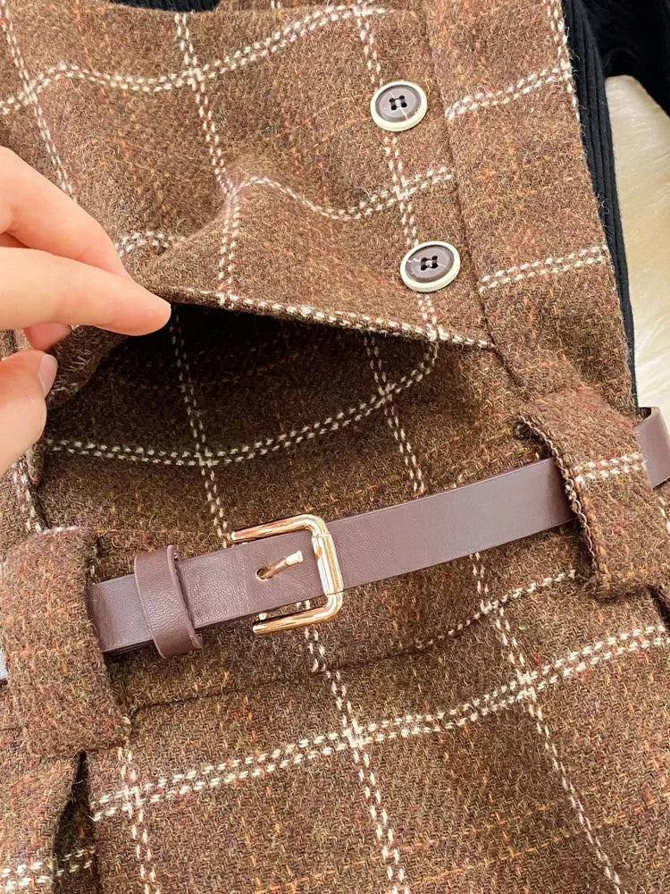 High Quality Fall Winter Women Sweater Overalls Dress Sets Casual Knitted Tops +Plaid Woolen Dress 2 Piece Sets Outfits Female