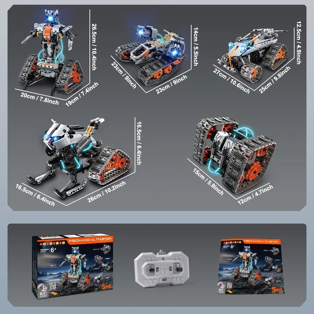 HOGOKIDS Remote Controlled Toy with LED Light-5 in 1 Robot Tracked Racer with App&Remote Control 604 Pieces Tank Car Toys for 6+