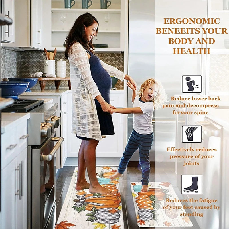 Kitchen Mat Absorbent Bathroom Rug Non-Slip Entrance Doormat Halloween Thanksgiving Day Home Decoration Cartoon Pumpkin Foot Mat
