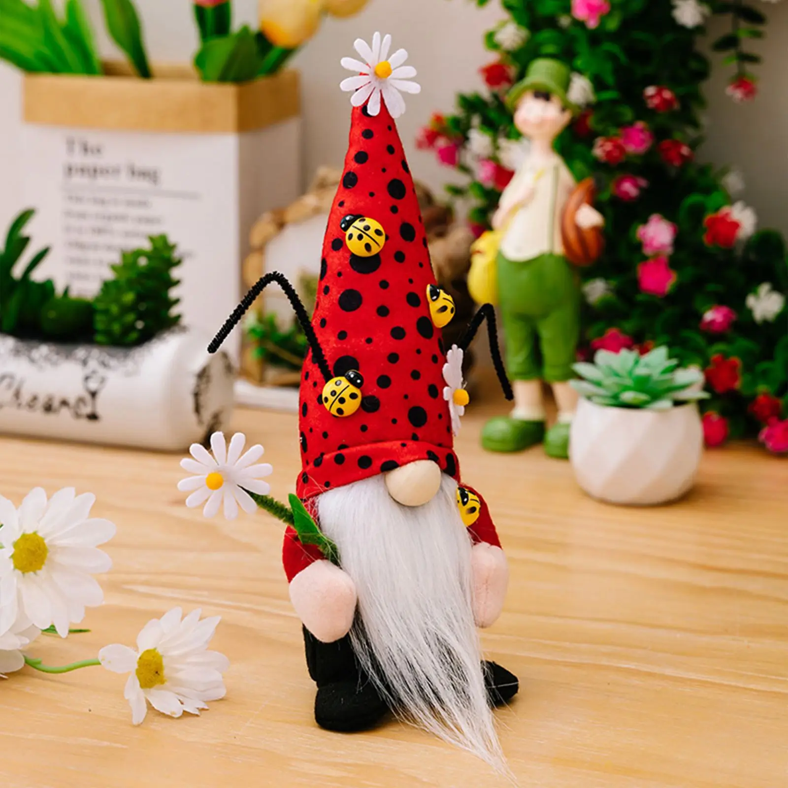 Ladybug Gnomes Kitchen Tiered Tray Decor Plush Swedish Tomte Scandinavian Figurine Spring Summer Farmhouse Household Ornament