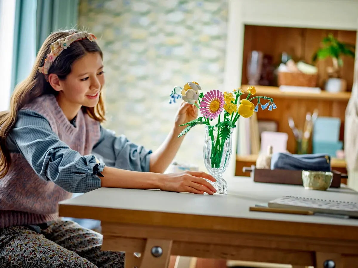 Lego blocks, romantic bouquets, DIY peony eternal flowers, MOC block toys, decorating girls' Valentine's Day gifts