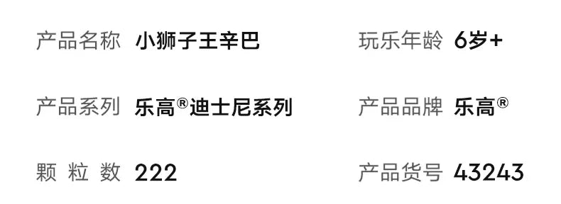 LEGO June new product Disney Animation 43243 Little Lion King Simba building block toys for boys and girls