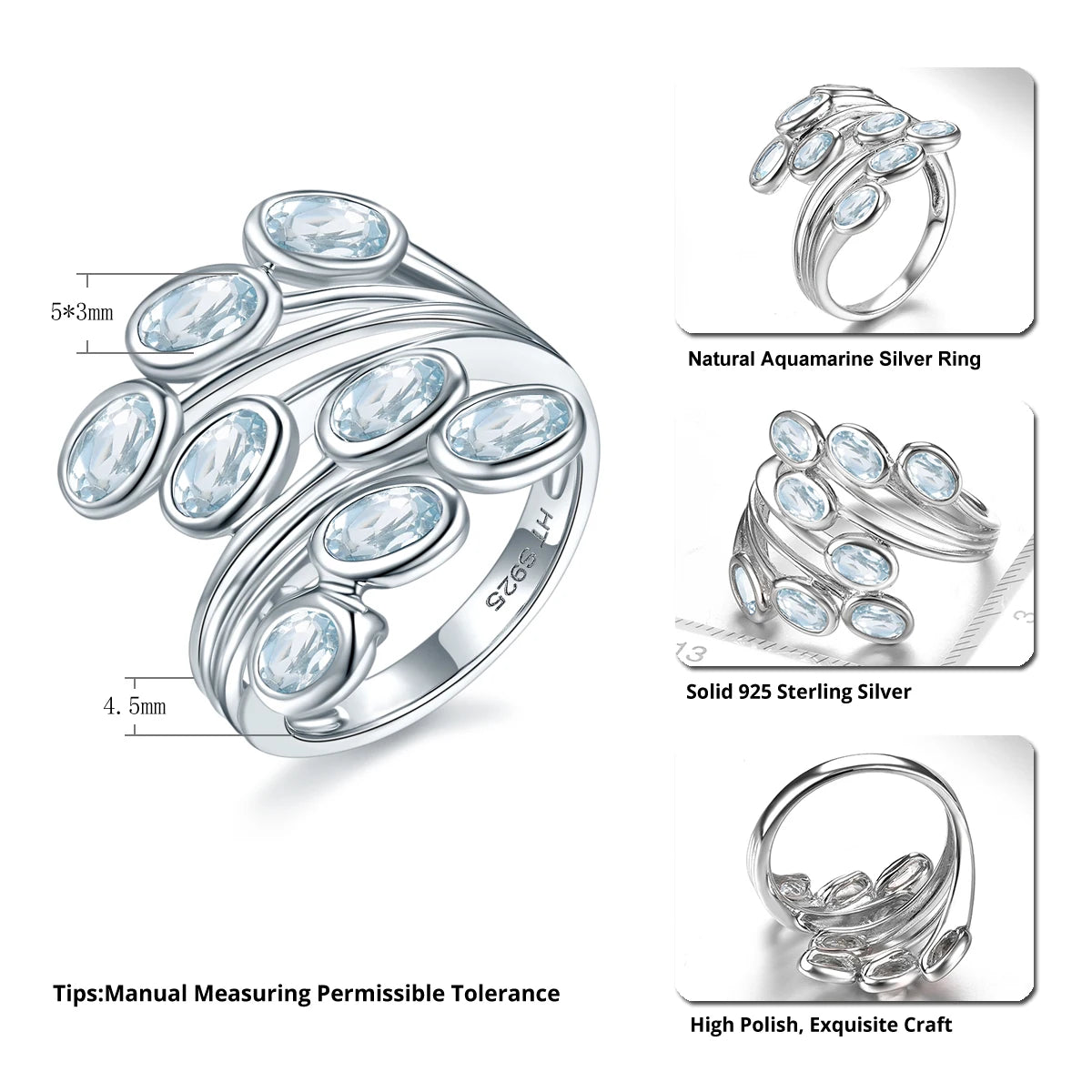 Natural Aquamarine Wedding Ring 925 Sterling Silver 2 Carats Genuine Gemstone Light Blue Elegant Jewelry Christmas Gifts