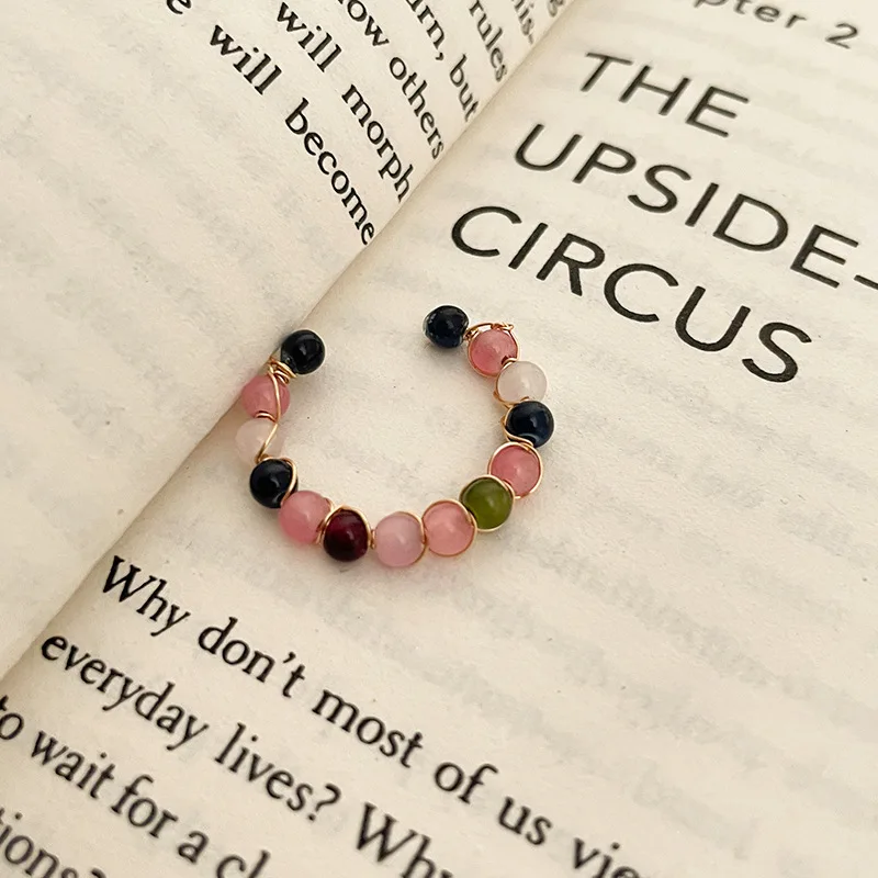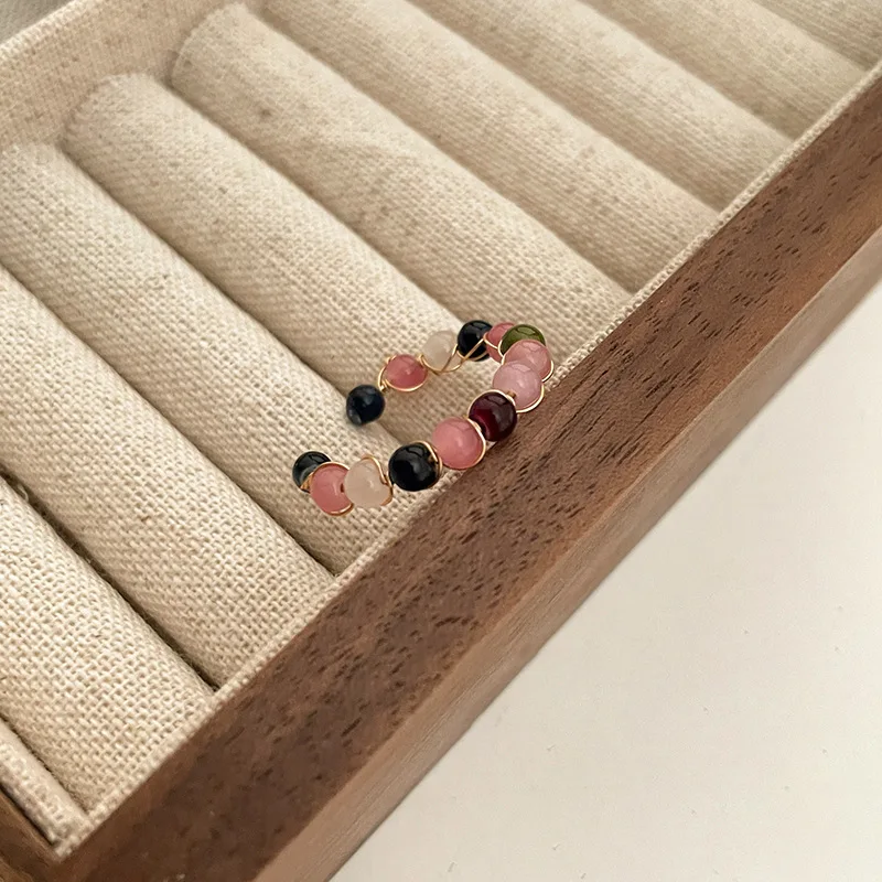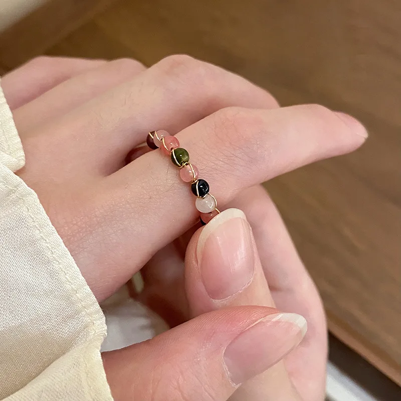 Natural Stone Rainbow Rings Fashion Retro Handmade Metal Wire Winding Beaded Open Adjustable Ring Female Charm Jewelry Gifts