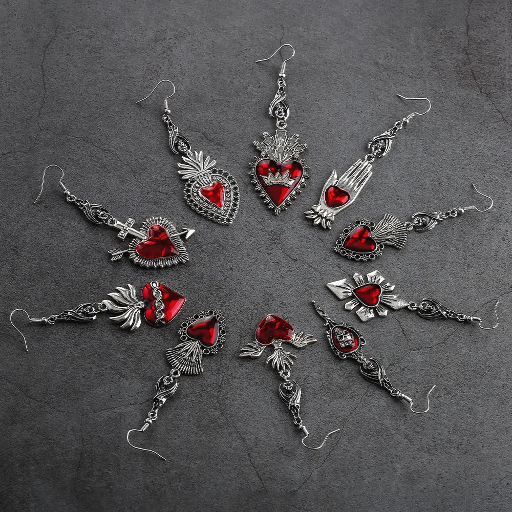 New Dark Vintage Gothic Collection Earrings Sacred Heart Goth Halloween Earrings for Women Red Oil Drop Gothic Punk Accessories