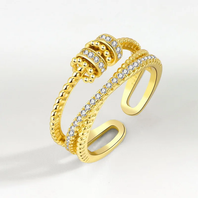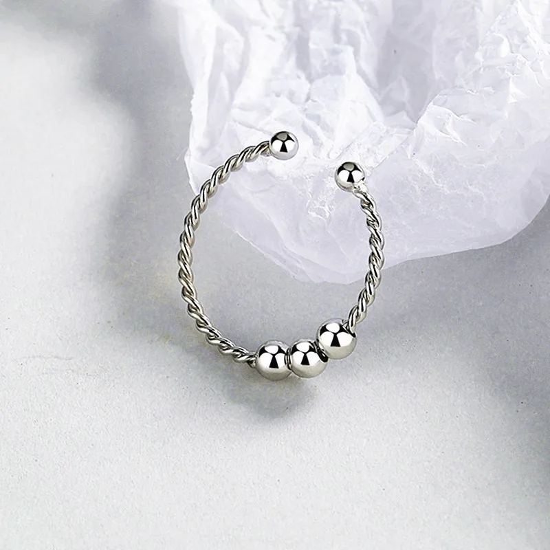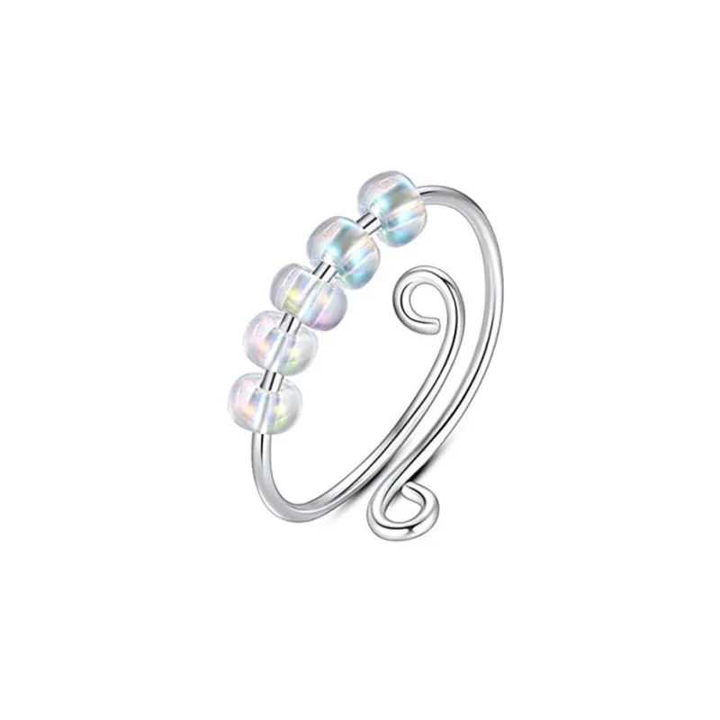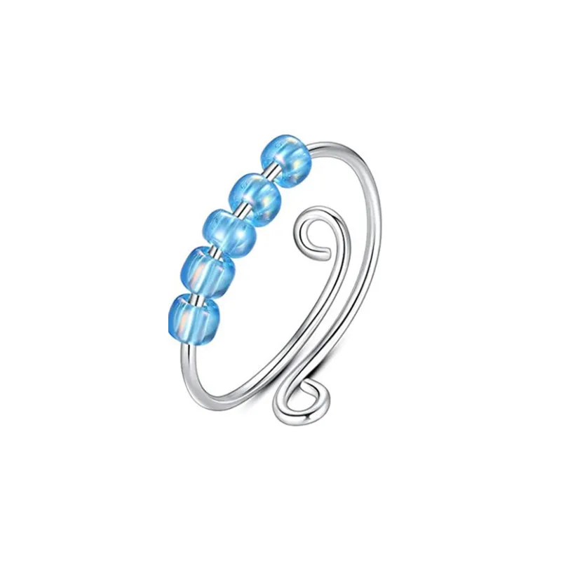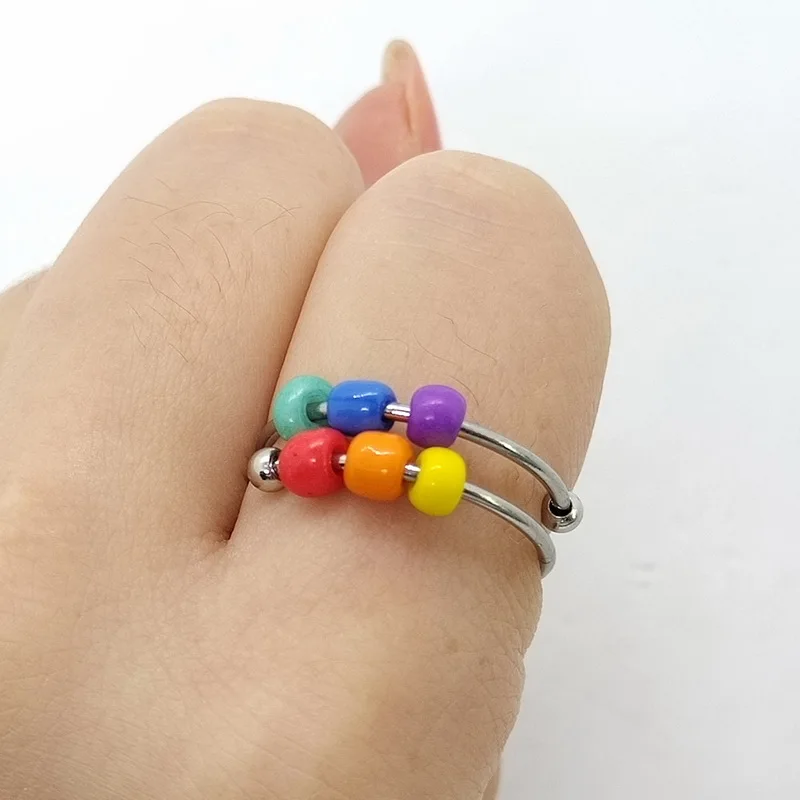 New Fidget Beads Rings for Women Men Rotate Freely Anti-stress Anxiety Ring Worry Stress Relief Jewelry Adjustable Stacking Ring